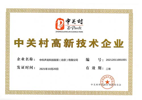 中科聲龍科技發(fā)展(北京)有限公司通過中關(guān)村科技園區(qū)管理委員會(huì)嚴(yán)格審核,榮獲“中關(guān)村高新技術(shù)企業(yè)”認(rèn)證。