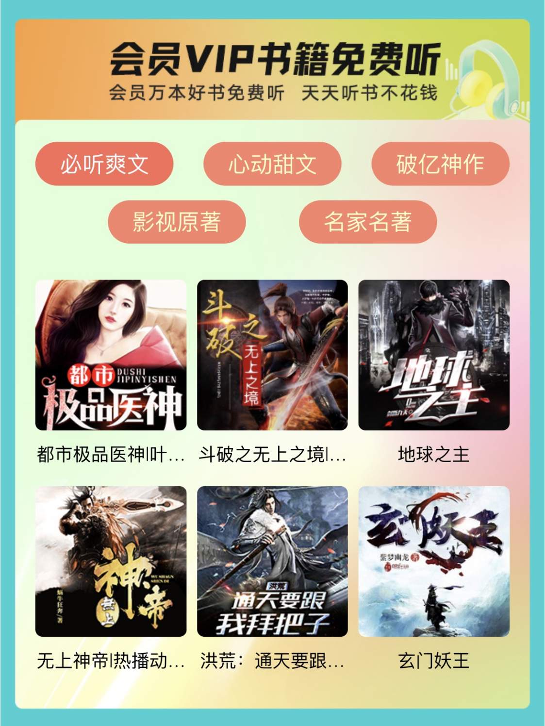 成為會員后,即可享受萬本會員好書免費聽。時下熱門玄幻、修真、都市類有聲書《都市極品醫(yī)神》、《斗破之無上之境》、《地球之主》、《無上神帝》、《洪荒:通天要跟我拜把子》、《玄門妖王》等均在線守候,更有多部最熱門有聲書懶人聽書獨家放送。無論必聽爽文、心動甜文亦或破億神作、影視原著、名家名著,都可以任意點播收聽。 九月金秋,天高云淡,又到了一年中最理想的旅行好時光。懶人聽書“99有聲圖書館開放日”自誕生之日起就力求成為“用戶最貼心的伴侶”,此次會員一折大促活動也正在火熱進行中,目之所及,心之所向,處處皆風景。趕快打開懶人聽書APP,無論是否已踏上旅途,接受這份大禮,衣食住行、吃喝玩樂多維生活精彩呈現(xiàn)。