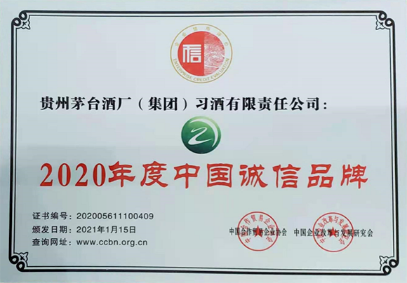 習(xí)酒公司榮獲“2020年度中國誠信品牌”