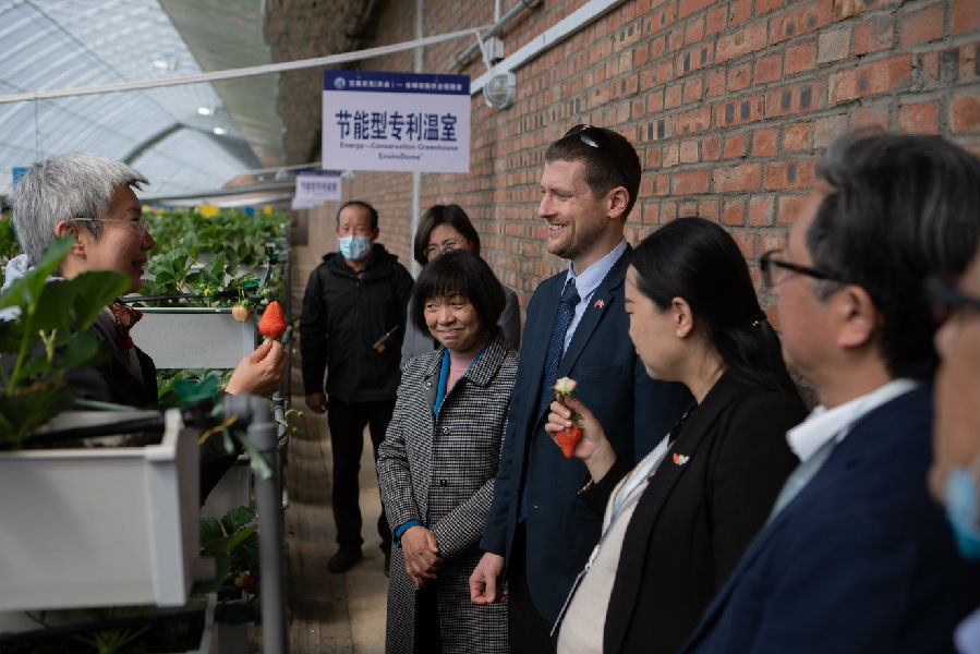 與會代表觀摩示范園并品嘗園區(qū)草莓和番茄 以色列大使館公使銜商務參贊艾曄賓和商務主任董燕在參觀完示范園區(qū)后,對以色列現(xiàn)代農(nóng)業(yè)技術在中國大地開花結果感到十分欣慰。艾曄賓說,中國人民和以色列人民有著深遠的友誼,以色列農(nóng)業(yè)技術企業(yè)將全力投身到中國鄉(xiāng)村振興這項偉大的事業(yè)中來,并堅信中以農(nóng)業(yè)合作一定會為中國鄉(xiāng)村振興作出積極的貢獻。 據(jù)了解,以色列艾森貝克公司2016年1月正式加入金正大集團。艾森貝克的加入,不僅加快了金正大國際化發(fā)展的步伐,也為集團在現(xiàn)代設施農(nóng)業(yè)領域發(fā)力奠定了基礎。 3月24號下午的論壇由以色列駐華大使館商務處商務主任董燕女士主持,以色列駐華大使館公使銜商務參贊艾曄賓、中國農(nóng)業(yè)科技園區(qū)規(guī)劃專家、中國農(nóng)業(yè)科學院客座教授張成波、山東省農(nóng)業(yè)廳國際合作處二級調研員宋蓮萍、國際肥料學會執(zhí)行董事、金正大集團副總裁翟際棟、中國國際衛(wèi)視中文臺臺長湯世珺參加了“2021以色列現(xiàn)代農(nóng)業(yè)技術應用與推廣論壇”, 論壇嘉賓就中以農(nóng)業(yè)科技合作,賦能鄉(xiāng)村產(chǎn)業(yè)振興這個主題進行了討論及深入交流,將在鄉(xiāng)村振興、農(nóng)業(yè)綠色發(fā)展、農(nóng)業(yè)科技研發(fā)和成果轉化、新媒體參與農(nóng)業(yè)品牌推廣等領域加強合作。