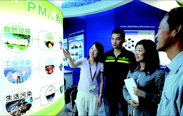 6月5日是世界環(huán)境日,今年的主題為“藍天保衛(wèi)戰(zhàn),我是行動者”,彰顯了國際上對我國打贏藍天保衛(wèi)戰(zhàn)的高度關(guān)注。作為世界上第一個大規(guī)模開展PM2.5治理的發(fā)展中國家,我國在借鑒世界各國治污經(jīng)驗的基礎(chǔ)上,通過自身實踐,探索形成了“政府主導(dǎo)、部門聯(lián)動、企業(yè)盡責(zé)、公眾參與”的中國模式。與2013年相比,2018年全國可吸入顆粒物(PM10)平均濃度下降27%。圖為在北京舉辦的國際環(huán)保節(jié)能展上,工作人員在介紹情況。 本報記者 余波 攝