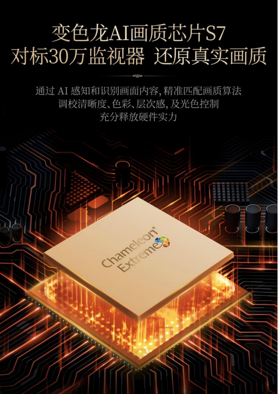 擁有了無光暈干擾的純凈畫布后,創(chuàng)維還要解決如何在超薄機身中讓硬件潛能完全釋放、呈現(xiàn)“真實畫質(zhì)”的難題。在超薄機身的約束下,普通藝術(shù)電視往往因為散熱、供電等限制而無法承受頂級芯片的巨大運行負荷。但創(chuàng)維變色龍顯示技術(shù)平臺自研的變色龍AI畫質(zhì)芯片S7不僅擁有行業(yè)頂級2.5T綜合AI算力,而且能夠在A7F系列的超薄機身中穩(wěn)定高效地運行。