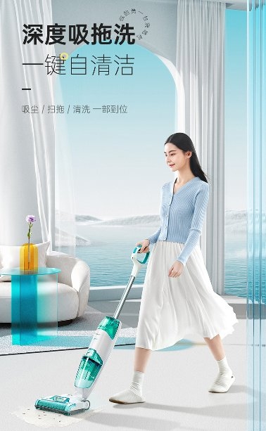 Lite首先在色彩營銷上就別具一格,十分抓人眼球。薄荷藍搭配在白、灰的底色上,清新活潑的視覺效果非常符合年輕人群的氣質和審美偏好。整體流暢的線條和僅3.35kg的超輕機身,讓整款產品都更輕盈,小個子女生也能輕松提拿,讓洗地不再是體力活,為年輕人騰出更多休閑娛樂的時間。
