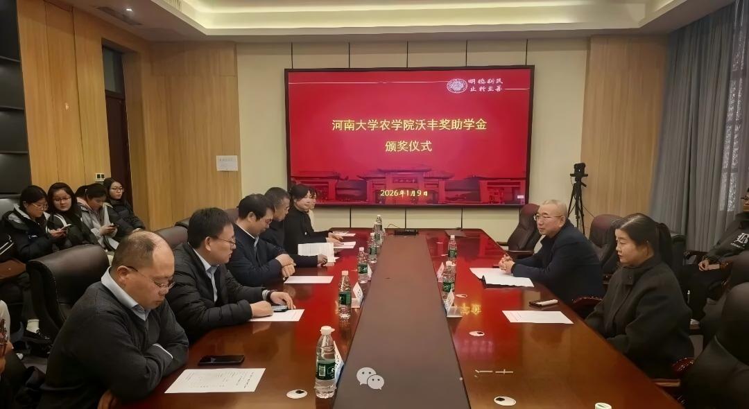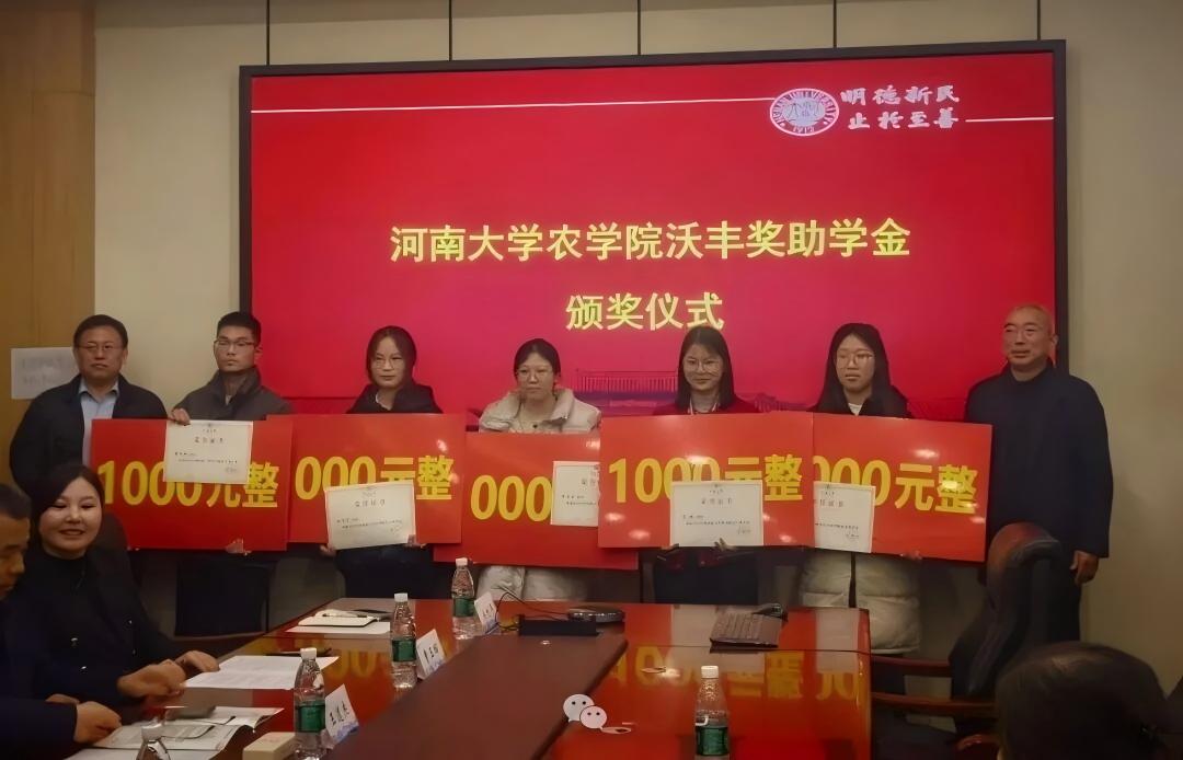 1月9日下午,河南大學農(nóng)學院“沃豐獎”助學金頒獎儀式在龍子湖校區(qū)隆重舉行。河南沃豐農(nóng)業(yè)開發(fā)有限公司總經(jīng)理劉貫軍、副總經(jīng)理何珮佟出席儀式。