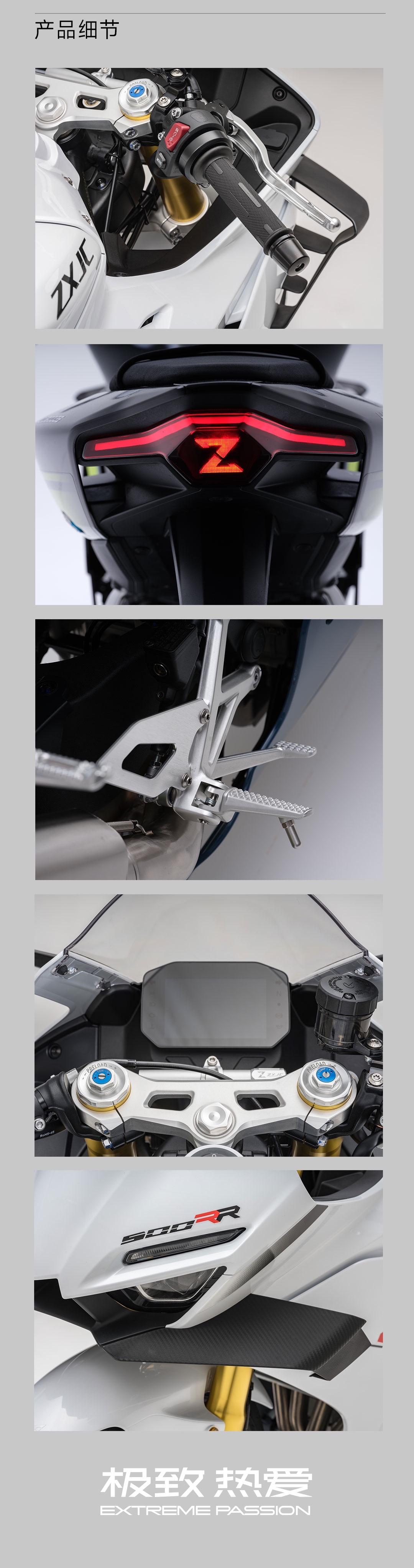 答:在張雪500RR 的研發(fā)階段,我們邀請了數(shù)百位典型用戶參與多路況實測,從時間維度、距離維度和場景維度出發(fā),在人機工學交互降低不適感,最終目的是做到讓性能車回歸生活場景。張雪500RR 的舒適性設計不是對性能的妥協(xié),而是通過技術創(chuàng)新實現(xiàn)的精準平衡。