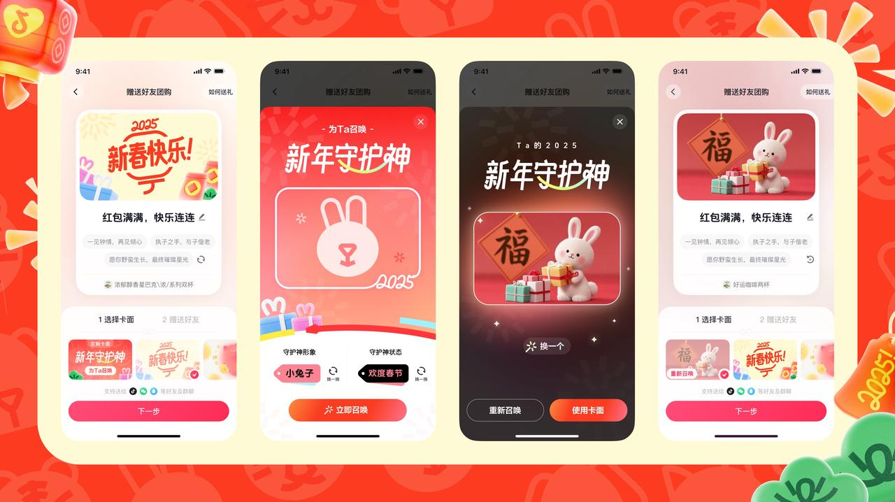 此外,抖音生活送禮玩法全面升級。1 月 24 日至 2 月 12 日期間,用戶團購商品可一鍵 “贈送好友”,還能附上溫馨的新年祝福語,為好友精心選擇 “新年守護神形象” 與 “守護神狀態(tài)” ,獨特新穎的送禮卡面趣味十足。收到禮物的人還能使用預制專屬特效,拍攝 “炫耀視頻”,曬出朋友的心意,讓春節(jié)的儀式感拉滿。