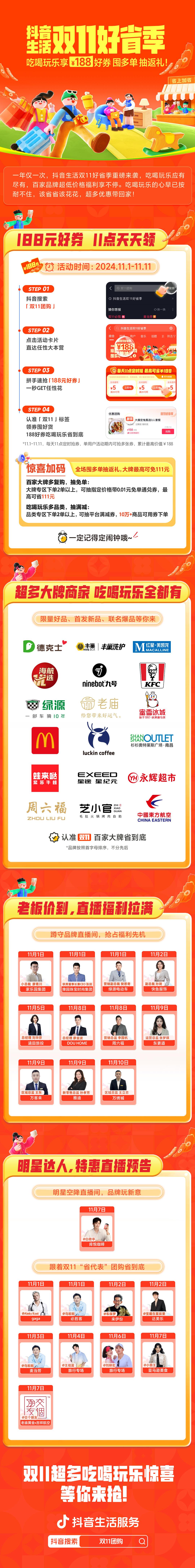 雙11吃喝玩樂上抖音,188好券福利百家大牌享不停!