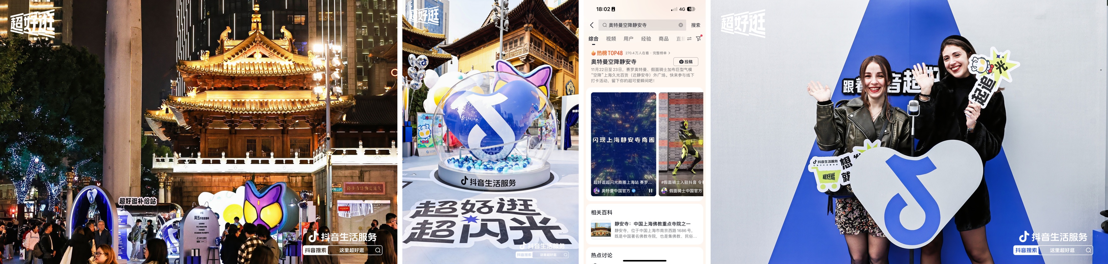 作為靜安區(qū)年度重大活動,抖音超好逛“靜安寺&靜安公園線下快閃”活動被納入「潮在靜安」共同宣傳,并聯(lián)動上海九大商圈打造「商圈逛GAI指南」,多位頭部達人通過“直播+短視頻”的方式進行內(nèi)容種草,活動引發(fā)用戶廣泛搜索,熱點#奧特曼空降靜安寺登上全國榜Top11,上海榜Top1的高位,助力燃動商圈好生意。