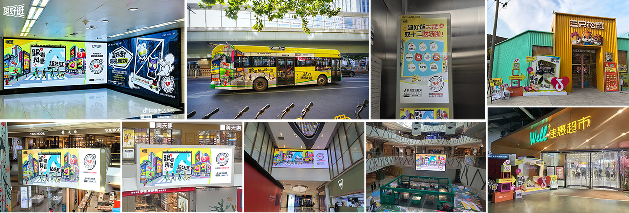 此外,抖音“超好逛”在大街小巷拉滿購物氛圍,上海、杭州、武漢、鄭州等7城15+商圈大屏上刊,全面“霸屏”釋放活動聲量 ,14+零售頭客主題物料入店,通過創(chuàng)意陳列和互動體驗吸引消費者,提升購物興趣;結(jié)合促銷活動,有效促進線下交易增長,為商家?guī)順I(yè)績提升。