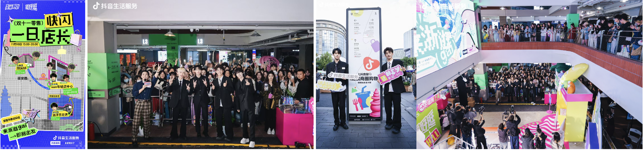 以“逛gai”為發(fā)力點,抖音生活服務打造“來浙逛gai”消費新場景。四位超人氣「一日店長」進駐杭州遠洋樂堤港、湖濱88、ICON年輕派中心三大潮流商圈,以“線下新奇體驗+線上福利轟炸”吸引來往行人駐足打卡,引爆線上和線下熱度。
