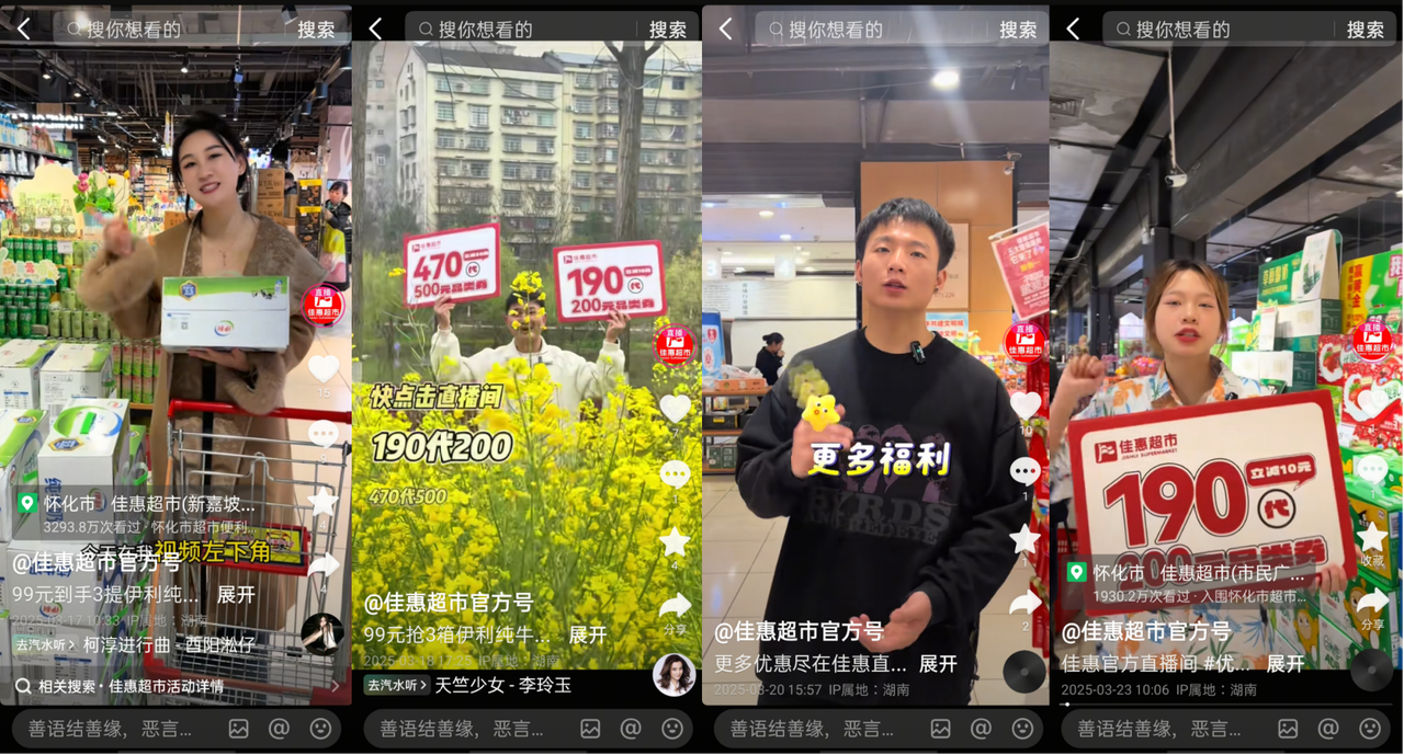 當(dāng)傳統(tǒng)商超還在糾結(jié)“該不該放棄線下海報、社群拉新”時,佳惠找到了更聰明的解法——不是拋棄舊的經(jīng)驗,而是用抖音的流量邏輯升級,形成一套適用于品牌走線上化的方法。