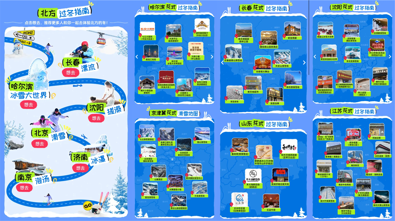 這次活動(dòng)匯集了洗浴按摩、溫泉桑拿、特色美食、賞雪戲雪等北方冬日熱門游玩、體驗(yàn)場(chǎng)景,同時(shí)站內(nèi)上線活動(dòng)各分會(huì)場(chǎng),聯(lián)動(dòng)10萬(wàn)+商家,好團(tuán)購(gòu)不斷更,好券送不斷,福利搶不停。更有賈乃亮、杜海濤、宣璐等一眾明星親自助陣,花式為各城市打call。各地文旅扛起冬季出行大旗,瘋狂輸出保姆級(jí)冬日吃喝玩樂(lè)攻略,和本地達(dá)人一起為大家整出各種過(guò)冬花活。