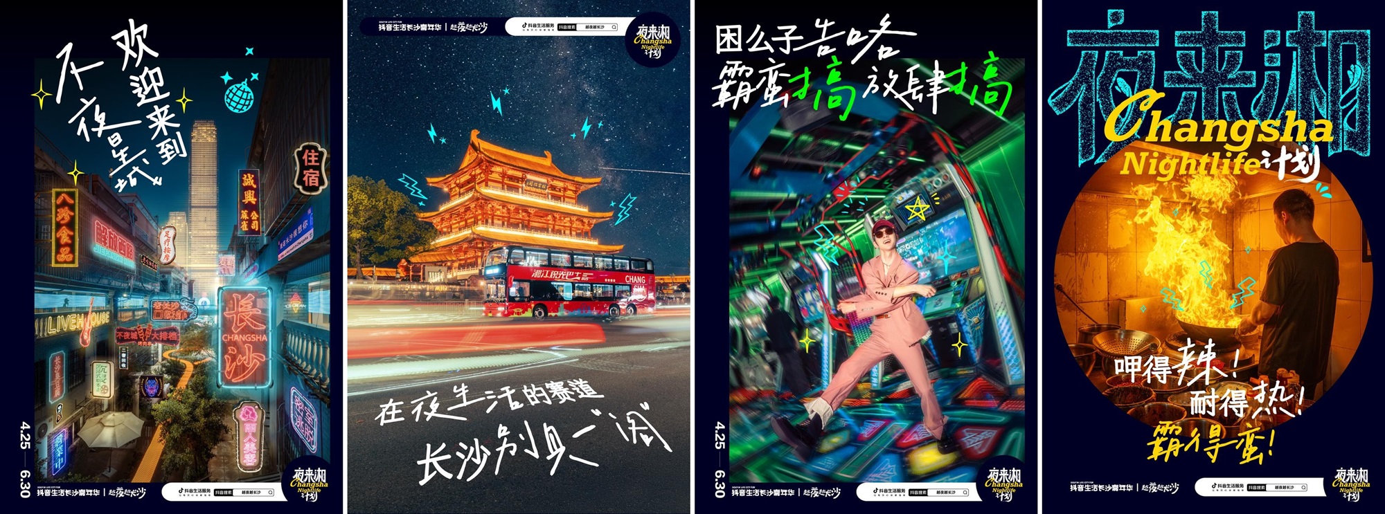 長沙城市宣傳片里升騰的夜市煙火與躍動(dòng)的霓虹光影,將夜生活場景凝成視覺符號(hào),點(diǎn)燃了一波消費(fèi)熱情。這部聚焦四大夜生活場景的城市宣傳片,通過文旅渠道與戶外大屏的傳播,收獲了百萬級(jí)播放量;活動(dòng)同步推出的22張夜生活主題情緒海報(bào)深入街巷店鋪,借助商戶店內(nèi)展示與本地媒體擴(kuò)散,在全城鋪設(shè)多個(gè)海報(bào)欄快閃點(diǎn)位,與線下用戶形成深度互動(dòng)鏈接。