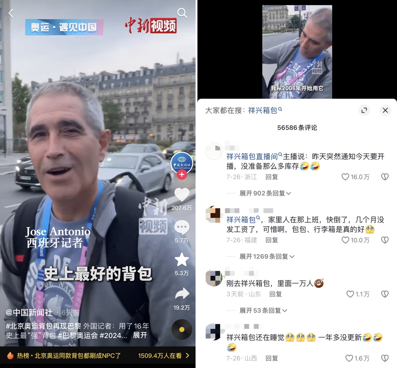 熱點(diǎn)先行,緊跟文娛的風(fēng)◇ 跑贏大眾洞察,讓熱點(diǎn)轉(zhuǎn)化為機(jī)會(huì)點(diǎn)從全民盛事到大熱 IP,從影視劇綜到明星話題,每天都有各類文娛內(nèi)容,吸引著大眾目光,一個(gè)個(gè)新的熱點(diǎn)熱梗也在用戶圍觀與互動(dòng)中被不斷創(chuàng)造出來。 繼秋天的第一杯奶茶之后,冬天的第一盆草莓蛋糕突然火了起來,草莓蛋糕 + 搪瓷盆的新奇搭配盤活了不少搪瓷盆廠;又比如勇闖美國街頭的「刀樂哥」,用兩個(gè)單詞「吐刀樂」(Two dollar)賣爆義烏小玩具……不得不說,這世界就是一個(gè)巨大的熱點(diǎn)玩?,F(xiàn)場(chǎng)。 短小精悍且通俗易懂的各種話題梗,是當(dāng)代年輕人自我表達(dá)和尋找身份認(rèn)同的渠道,也成為營銷中的硬通貨。而那些能夠及時(shí)洞察大眾喜好,擅長(zhǎng)接梗造梗的品牌,往往更有機(jī)會(huì)贏得消費(fèi)者的好感。 就比如,誰也沒能想到,去年接住巴黎奧運(yùn)會(huì)潑天富貴的是一款背包。 作為天然的熱點(diǎn)話題制造機(jī),去年夏天的巴黎奧運(yùn)會(huì)匯聚了全民目光。當(dāng)奧運(yùn)會(huì)期間,中新社記者在巴黎街頭,發(fā)現(xiàn)一位西班牙記者背著 16 年前北京奧運(yùn)會(huì)背包,對(duì)方稱這是「史上最好的背包」,這支該視頻在抖音上意外火了起來,收獲了 200 多萬的點(diǎn)贊。