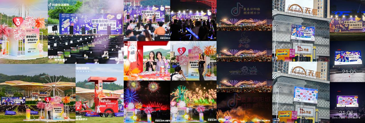 在素有“世界煙花之都”之稱的瀏陽,沉浸參與一場視覺盛宴是種怎樣的體驗(yàn)?抖音生活服務(wù)聯(lián)動(dòng)瀏陽政府、大吉煙花、天空營地,為本次活動(dòng)進(jìn)行了IP定制的沉浸式煙花秀,成功引爆了一波湖南夜游熱潮?!冈揭乖介L沙」活動(dòng)在五一假期聯(lián)合瀏陽政府,在瀏陽上空驚喜點(diǎn)亮“最美瀏陽焰,越夜越長沙”星空標(biāo)語,并于5月17日在瀏陽天空劇院上演抖音專屬煙花秀和無人機(jī)秀,多架無人機(jī)同步編隊(duì)演繹夜長沙經(jīng)典場景:岳麓山愛晚亭的飛檐輪廓、毛主席雕像的剪影與瀏陽天空劇院的絕美穹頂交替閃現(xiàn);夜色漸深時(shí),舉著鉗子的小龍蝦、瀏陽的蒸菜與冒著氣泡的啤酒杯互相捧杯,將“瀏陽焰”“夜長沙”兩大主題向數(shù)十萬觀眾展現(xiàn)。