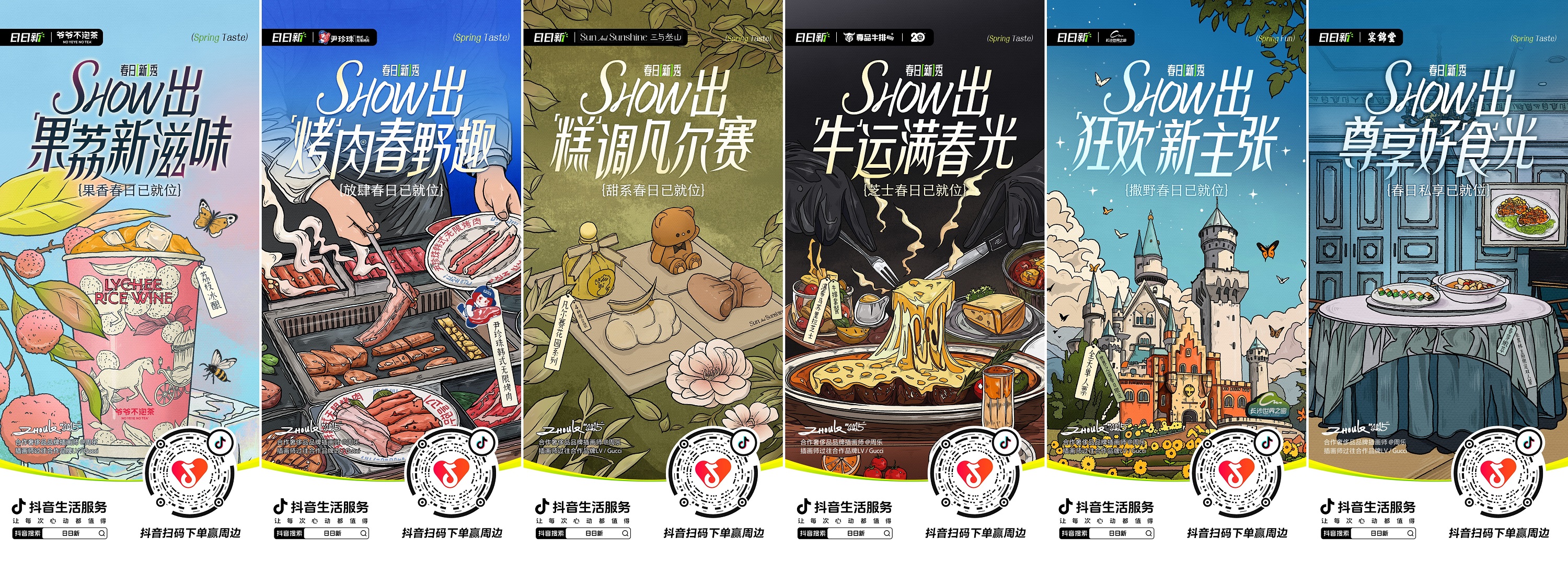 4月3日至13日,「日日新」攜手曾合作過LV、Gucci的奢侈品插畫師@周樂 及長沙世界之窗、宴錦堂、爺爺不泡茶、尊品牛排、尹珍珠自助烤肉、三與參山六大品牌,發(fā)起“春日新秀”線下活動,整場活動以“Show出新體驗”為主題,以“Show出特別的自己”為切入點,融合藝術(shù)、消費與社交,激發(fā)用戶參與熱情。