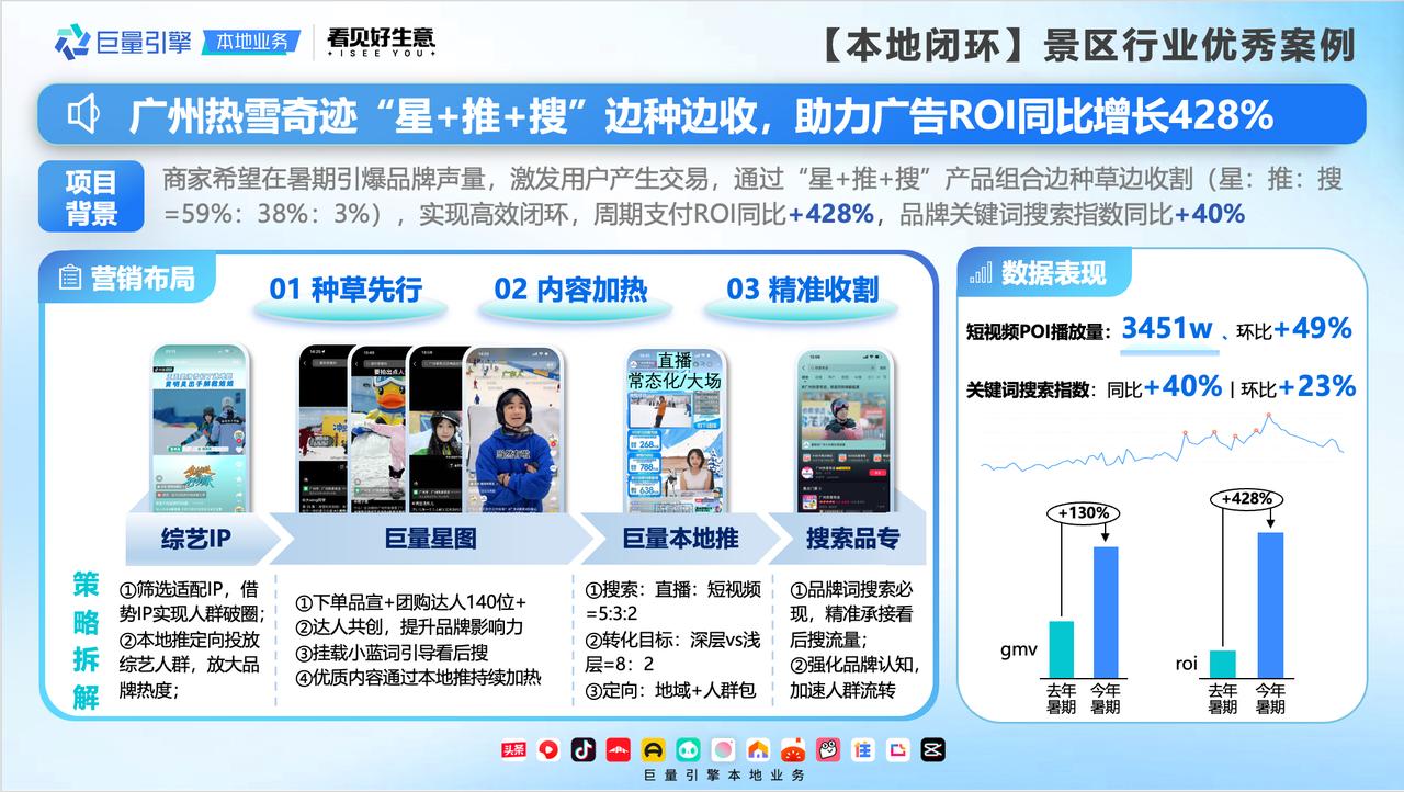廣州熱雪奇跡同樣采用“星圖+本地推+搜索”的組合產(chǎn)品包,邊種草邊收割,實現(xiàn)高效環(huán)比。