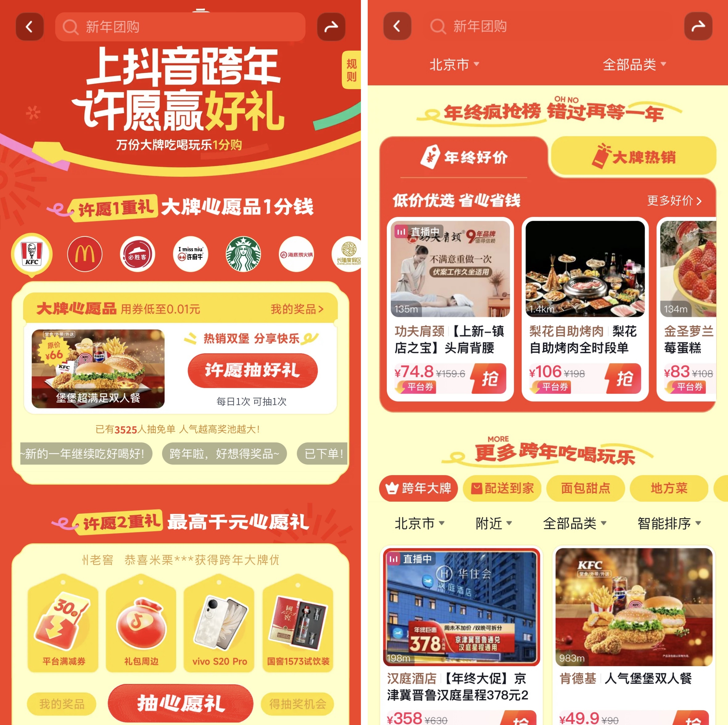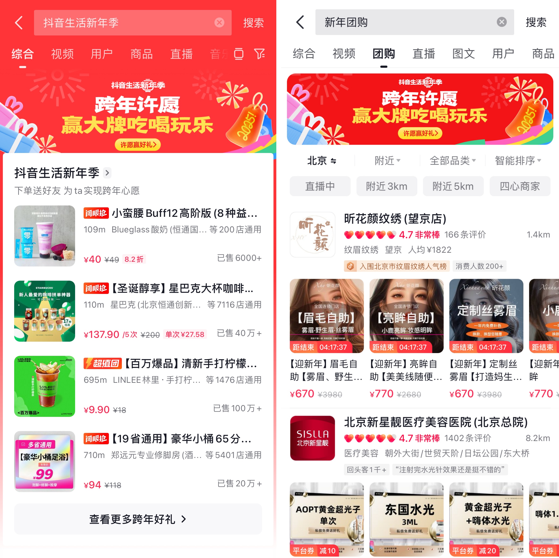 現(xiàn)在打開(kāi)抖音 APP,搜索「抖音生活新年季」或「新年團(tuán)購(gòu)」,即可享受這場(chǎng)跨年購(gòu)物盛宴,讓我們一起"上抖音,花小錢,過(guò)大年"!