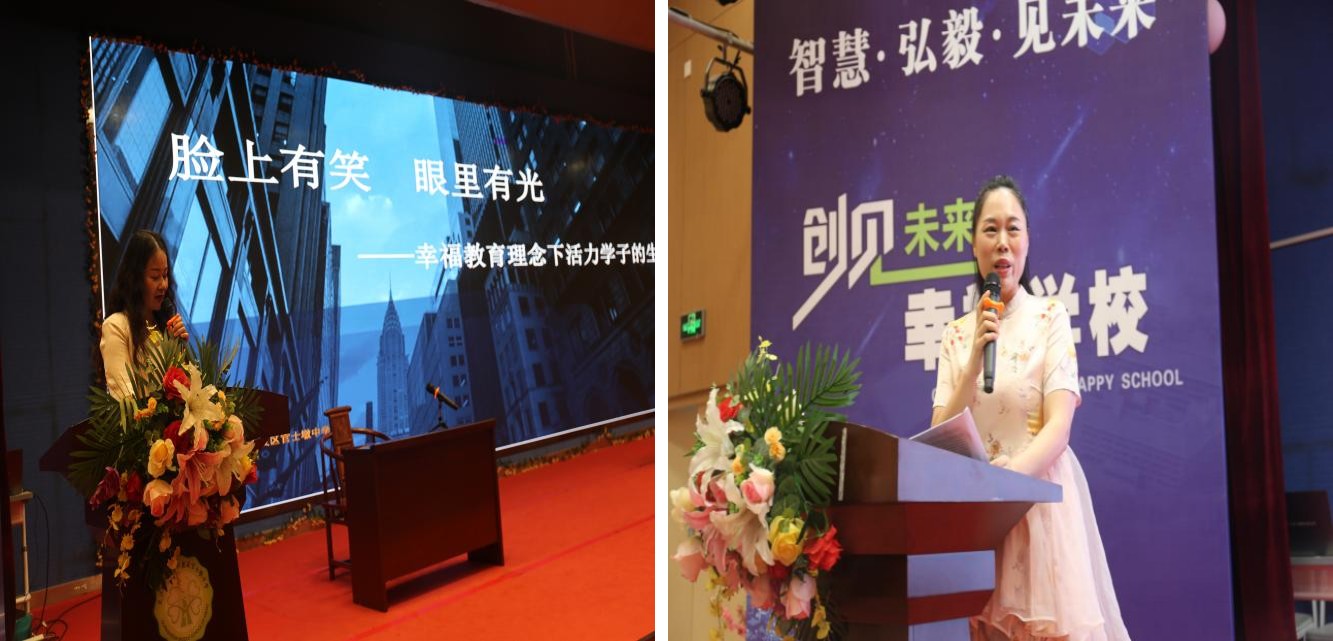 學(xué)校代表主旨報(bào)告由武漢經(jīng)開區(qū)官士墩中學(xué)胡鳳蘭副校長和漢陽區(qū)快活嶺小學(xué)柳娜副校長分享。胡校長以《臉上有笑,眼里有光——幸福教育理念下活力學(xué)子的生長》為題,從課程是主旋律、開放是關(guān)鍵詞、分?jǐn)?shù)是強(qiáng)心針等三個維度彰顯了學(xué)校注重校本課程的深度開發(fā)、辦學(xué)特色的里外融通和育人質(zhì)量的內(nèi)涵提升等特色品牌的發(fā)展動能;柳校長以《五育并舉求發(fā)展,快樂助跑素質(zhì)行》為題,闡述了育人理念“讓每一位學(xué)生體驗(yàn)學(xué)習(xí)的快樂”落地的校本作為——“五育”節(jié)日化,即德育文化節(jié)、智育閱讀節(jié)、超燃體育節(jié)、美育藝術(shù)節(jié)和快樂勞動節(jié),塑造了學(xué)校快樂教育的靚麗品牌。