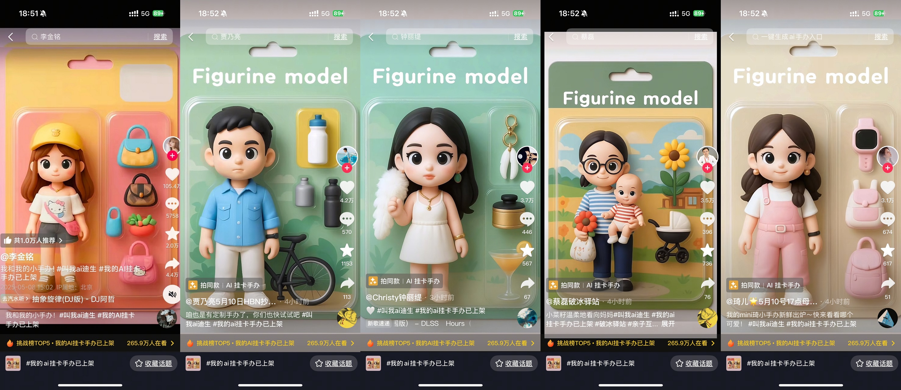 5月8日,「AI掛卡手辦」特效上線,用戶上傳照片即可將真人形象轉(zhuǎn)化為二次元風(fēng)格數(shù)字手辦,一鍵生成專屬定制手辦,推動開啟“全民造物”時代,再度激發(fā)了網(wǎng)友們的創(chuàng)作熱情。低門檻的AI互動方式,撬動了站內(nèi)時尚、美食、劇情、顏值變裝、戶外、萌寵、家居、美妝、音樂等多垂類領(lǐng)域作者,同時站內(nèi)有30+明星藝人及各類型達(dá)人使用特效拍攝視頻,熱點(diǎn)一觸即發(fā)。以演員李金銘為例,其發(fā)布的「AI掛卡手辦」穿搭look變裝視頻點(diǎn)贊破百萬,帶動用戶互動量激增,相關(guān)特效投稿迅速攀升至萬條。