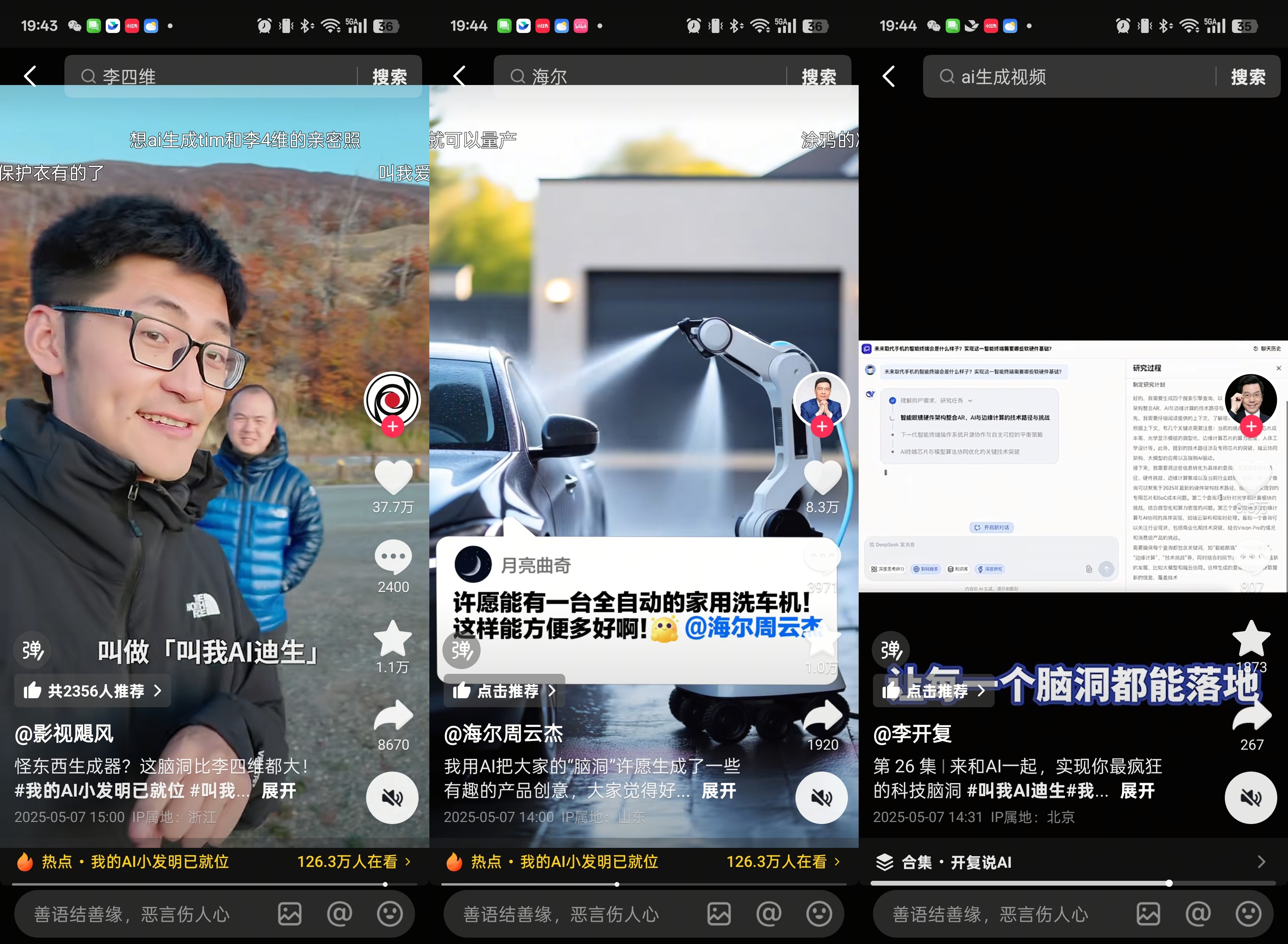 同時,聯(lián)動科技類頭部達(dá)人@影視颶風(fēng),知名科技類企業(yè)老板@海爾周云杰、@李開復(fù) 結(jié)合自身專業(yè)知識,圍繞圖像生成類AI工具進(jìn)行觀點(diǎn)及腦洞創(chuàng)意實(shí)現(xiàn)過程進(jìn)行分享,頭部達(dá)人 @網(wǎng)不紅萌叔Joey、@千惠??在這里??,多維度植入AI萬腦洞發(fā)明,共同助力話題發(fā)酵。