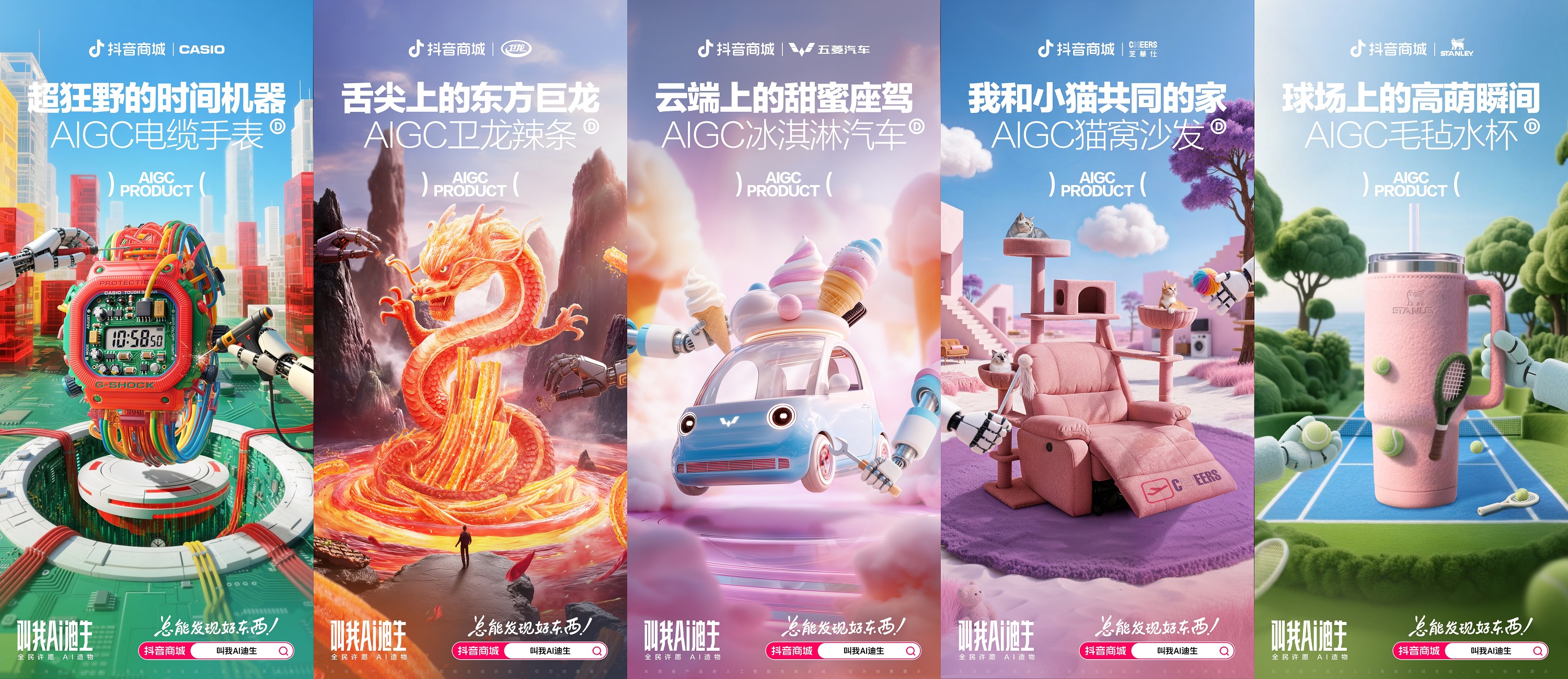 年輕群體不再滿足于被動選擇商品,而是追求“我的設(shè)計我做主”。抖音商城「叫我AI迪生」活動,借助AI技術(shù),將用戶創(chuàng)意轉(zhuǎn)化為可視化設(shè)計,激發(fā)了千萬級UGC生產(chǎn)力,為商家提供更直接的需求洞察與營銷創(chuàng)新工具。