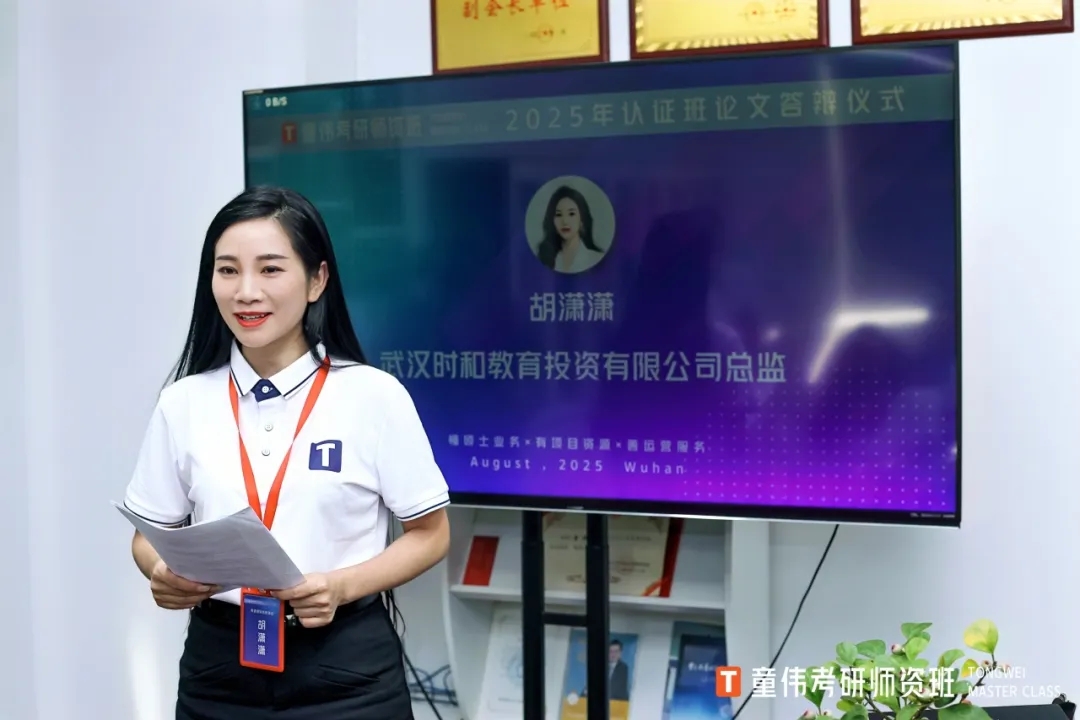 和楊帆一起“同窗苦讀”又收獲“甜美果實”的童偉考研師資班2025年認(rèn)證班學(xué)員,分別來自北京、江蘇、浙江、廣東、河南、江西、湖北等地教育機(jī)構(gòu),他們經(jīng)過三天三夜的學(xué)習(xí),8月20日在武漢理工大學(xué)孵化樓,全部完成結(jié)業(yè)論文撰寫和通過答辯評審,優(yōu)秀學(xué)員還獲得了名校導(dǎo)師頒發(fā)的榮譽(yù)證書。