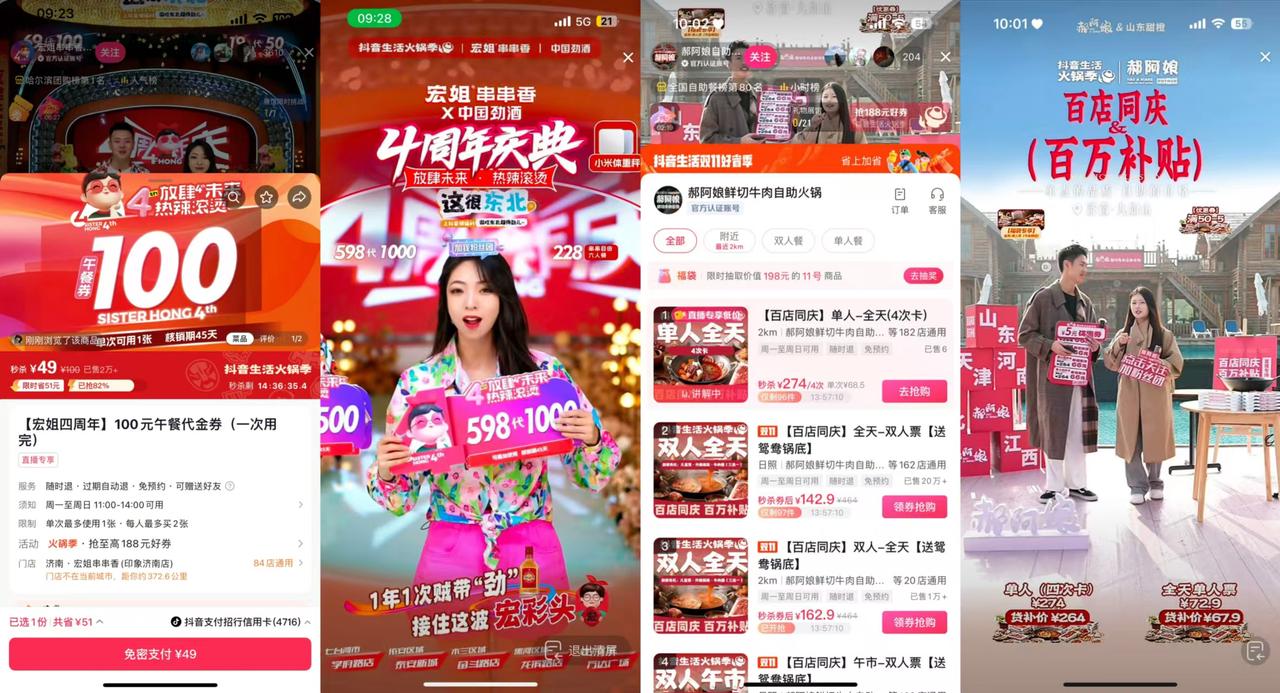 活動(dòng)熱度之下,眾多商家紛紛開播,其中,郝阿娘火鍋季開門紅官號(hào)連播3天,并疊加達(dá)播1天,累計(jì)直播GMV高達(dá)1100萬(wàn)+,成功沖刺火鍋節(jié)新增量;宏姐串串香4周年寵粉直播更是火力全開,開播3小時(shí)即達(dá)500萬(wàn)+,場(chǎng)觀人數(shù)近3000,支付訂單超過(guò)3萬(wàn)單。