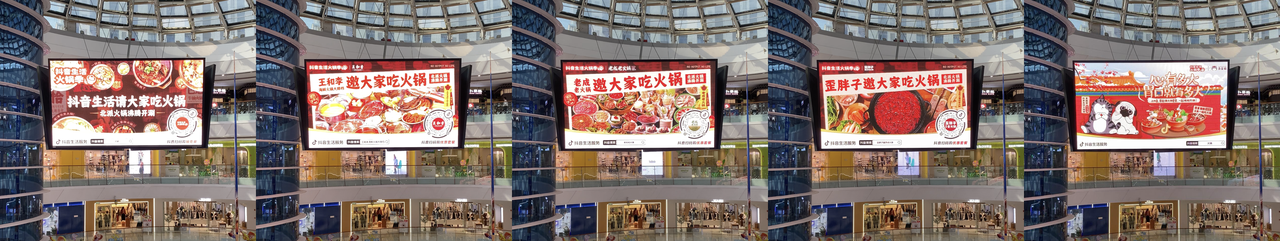 同時(shí),在線下,火鍋商家通過(guò)物料進(jìn)店,北京、沈陽(yáng)、濟(jì)南、南京核心商圈的高密度戶外大屏投放,不僅有效帶動(dòng)了區(qū)域熱度的持續(xù)升溫,還進(jìn)一步擴(kuò)大了品牌的曝光面積,增加了影響人群的受眾范圍。