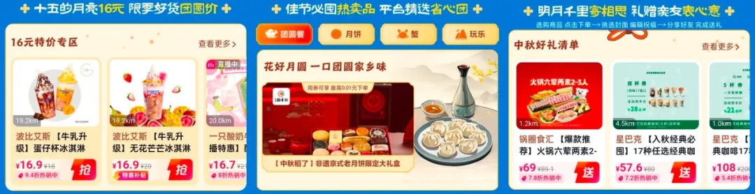 為了滿足消費(fèi)者對中秋特色品的個性化需求,「中秋團(tuán)圓季」特別上線的“佳節(jié)必囤熱賣品·平臺精選省心團(tuán)”專區(qū),匯聚了豐富多樣的好品供消費(fèi)者選擇。此外,活動攜手蜜雪冰城、塔斯汀、益禾堂、書亦燒仙草、良品鋪?zhàn)?、嘉華餅屋推出的禮品轉(zhuǎn)贈玩法,既可以一鍵送好品,也能通過定制祝福傳達(dá)心意。這種“電子送禮”精準(zhǔn)捕獲了年輕人足不出戶送好禮的潛在需求,讓線下送禮場景在線上實(shí)現(xiàn)規(guī)模化擴(kuò)散,助力品牌進(jìn)一步拉近和消費(fèi)者的距離,持續(xù)提升品牌好感度。