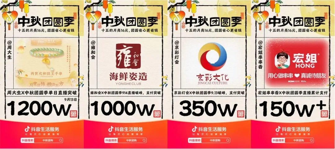 傳統(tǒng)佳節(jié)是拓展消費(fèi)人群的好時機(jī),商家如何與年輕人玩在一起,實(shí)現(xiàn)品牌影響力的破圈傳播?抖音生活服務(wù)以集卡抽獎贏好禮的創(chuàng)新玩法、超高性價比的16元貨品專區(qū),為「中秋團(tuán)圓季」的眾多品牌快速積累高人氣。