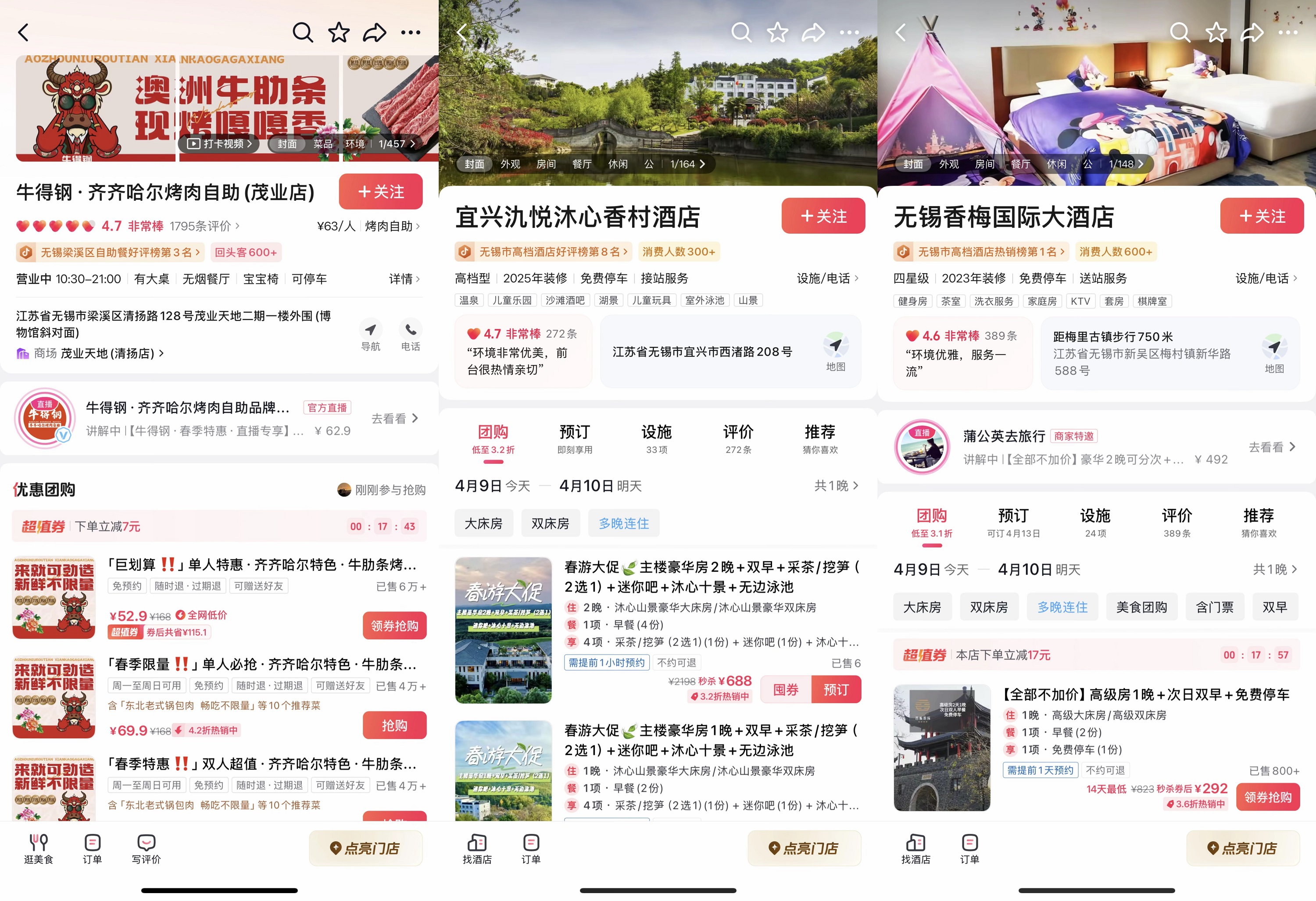 活動(dòng)期間,無錫春日魅力吸引越來越多游客來到無錫,當(dāng)?shù)鼐频耆胱÷室搽S之飆升,整體營收屢創(chuàng)新高!在平臺(tái)活動(dòng)激勵(lì)下,無錫酒店直播生態(tài)蓬勃發(fā)展,宜興氿悅沐心香村酒店、香梅國際大酒店、宜興竹海國際會(huì)議中心、宜興隨緣谷度假酒店等均表現(xiàn)亮眼,商家緊追春季踏青熱點(diǎn),巧妙借當(dāng)?shù)鬲?dú)特自然風(fēng)光打造直播場景,帶動(dòng)活動(dòng)總成交額大幅提升,為行業(yè)注入強(qiáng)勁增長動(dòng)能。其中,宜興氿悅沐心香村酒店緊抓清明小長假契機(jī),精準(zhǔn)定位親子人群,在關(guān)鍵節(jié)點(diǎn)適時(shí)推出采茶挖筍體驗(yàn)及酒店半自助下午茶團(tuán)購套餐,豐富酒店的游玩項(xiàng)目同時(shí)撬動(dòng)抖音頭部團(tuán)購達(dá)人每日開播,助力酒店在活動(dòng)期間交易額突破 200 萬。