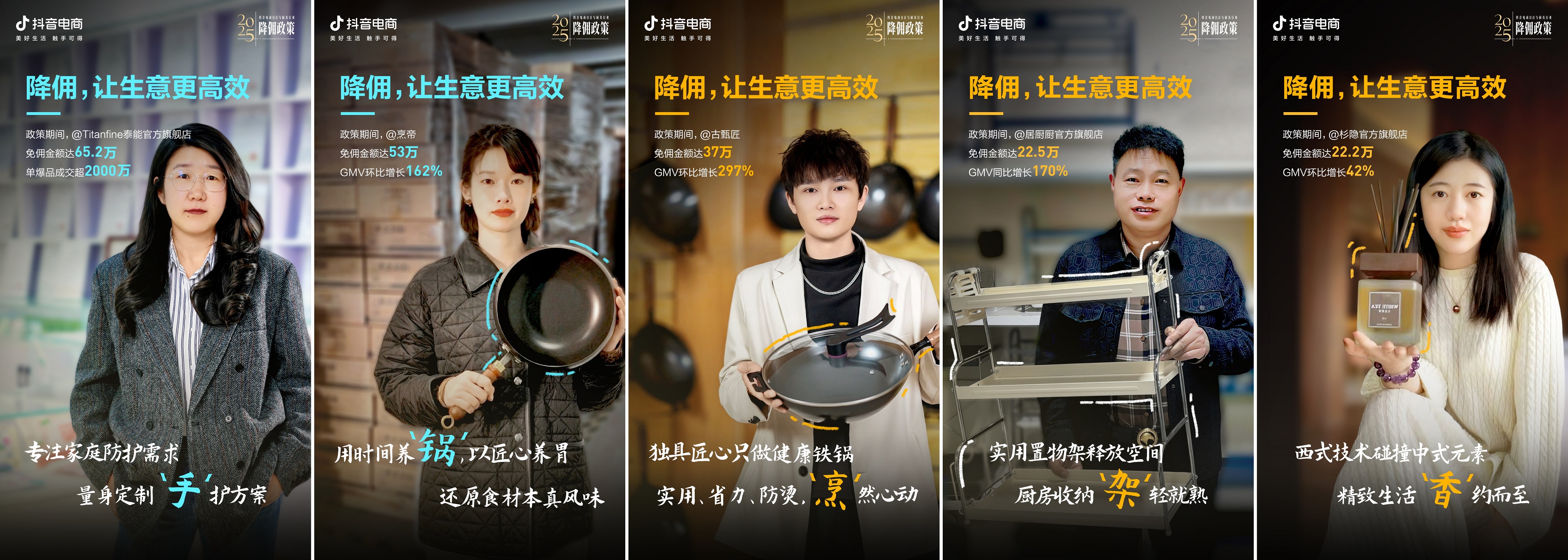 他們只是眾多受益商家中的縮影。截至2月28日,抖音電商日百與廚具行業(yè)的降傭政策預(yù)估累計節(jié)省傭金達3.6億,覆蓋鍋具、雨傘、置物架等生活剛需品類,以及香薰、鈦杯等趨勢品類,幫助商家實現(xiàn)顯著增長。值得一提的是,為持續(xù)助力商家高效經(jīng)營,該政策已延長至6月30日,為商家提供了更充裕的發(fā)展空間。