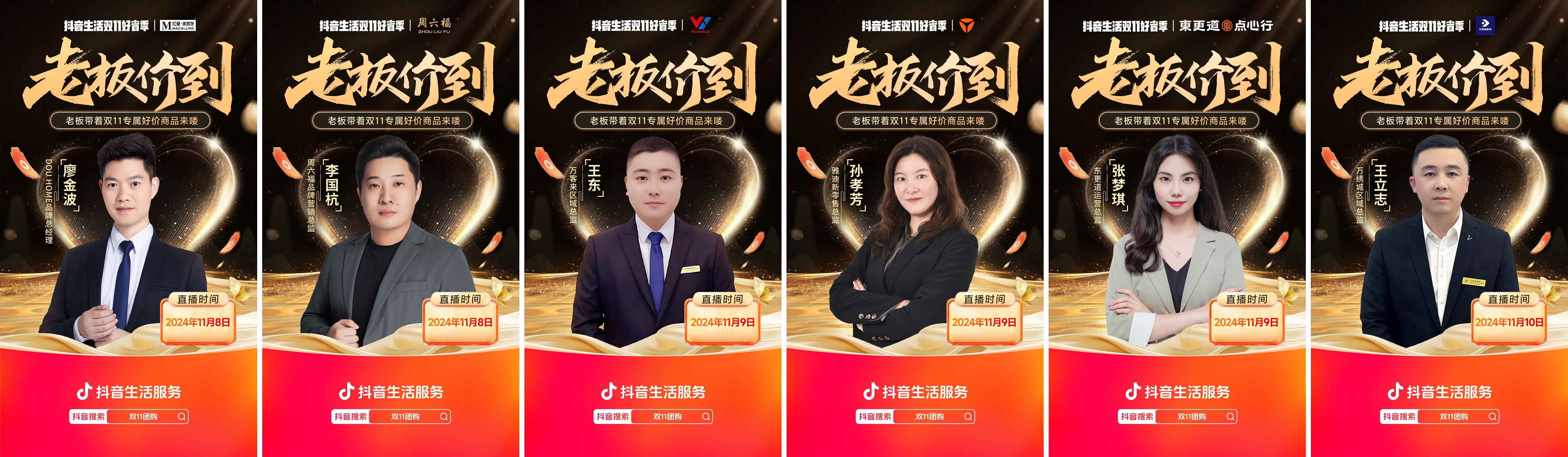 從老板兜里掏錢,不薅難受一整年!「抖音生活雙11好省季」特邀雅迪、周六福、萬客來等品牌老板來到直播間,化身品牌“省代表”為大家在線發(fā)放“省福利”!快來先碼住,記下直播時(shí)間,屆時(shí)定好鬧鐘去蹲守!