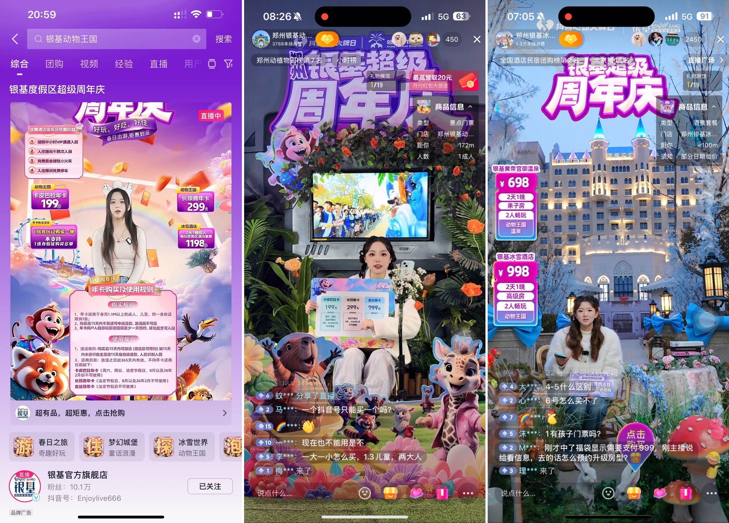 春日出游不想花冤枉錢(qián)?銀基直播間助你一鍵開(kāi)啟省“薪”模式?;顒?dòng)期間,銀基旅游度假區(qū)于多個(gè)官方賬號(hào)分別搭建實(shí)景直播間,生動(dòng)渲染大促氛圍,吸引觀眾駐足沉浸其中;直播間內(nèi)同步上架了高級(jí)房2天1晚雙人暢玩動(dòng)物王國(guó)套票,僅需998元即可拿下這一超值爆品,套票設(shè)計(jì)周到,避免了重復(fù)購(gòu)票的繁瑣,確保游客享受無(wú)憂舒適體驗(yàn)。此外,還有199元、399元、799元不等的動(dòng)物王國(guó)超值年卡供粉絲們熱情搶購(gòu),讓你在一年內(nèi)隨心所欲盡情暢游樂(lè)園;更有樂(lè)園兒童票大單品秒殺福利、免單券隨機(jī)驚喜放送,免費(fèi)升級(jí)主題房、冰雪酒店蛋糕券、自助晚餐券等豐厚豪禮等你來(lái)拿,真正將“實(shí)力寵粉”落在實(shí)處。