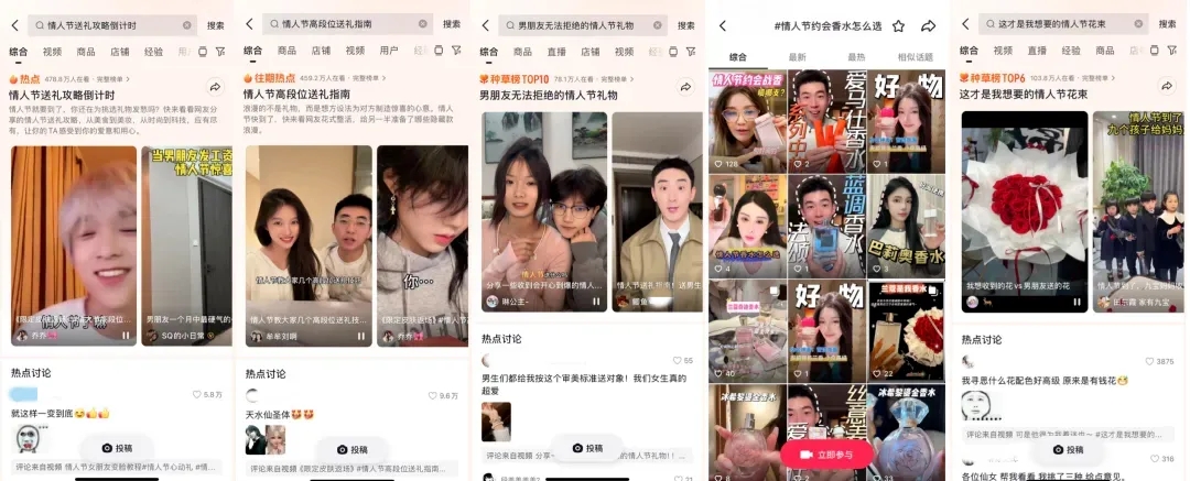 早在2月8日,#情人節(jié)送禮攻略倒計時、#情人節(jié)高段位送禮指南等話題就因精準切中在節(jié)日前期籌備禮物的迫切需求,迅速登上了熱點榜單,吸引了眾多用戶在話題下暢所欲言,分享送禮心得、創(chuàng)意靈感以及美好期待。