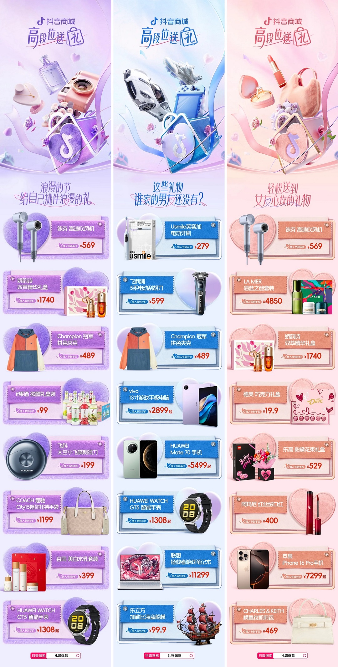 此外,抖音電商還基于情人節(jié)送禮人群廣泛拓展的趨勢,針對不同人群的送禮需求,推出了差異化的禮物清單,讓消費者在選購禮物時更加便捷高效,同時也助力商家拓展消費人群,為生意增長注入新動力。