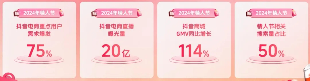 如2024年情人節(jié),抖音電商重點用戶需求爆發(fā)了75%,直播曝光量達20億,商城GMV同比增長114%,情人節(jié)相關(guān)搜索量占比達50%。今年用戶依然高度活躍,消費心智更為成熟。這充分證明了抖音電商擁有巨大的生意空間和增長潛力。