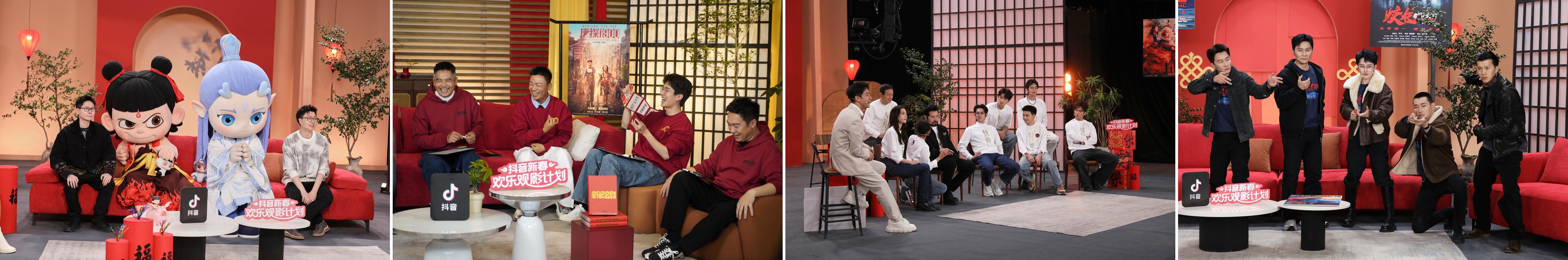 為了讓更多觀眾提前感受影片的魅力,在春節(jié)檔上映前,抖音邀請(qǐng)春節(jié)檔電影主創(chuàng)齊聚@抖音電影 直播間,與大家進(jìn)行線上互動(dòng),分享他們的創(chuàng)作心得和拍攝趣事。 在《哪吒之魔童鬧海》的直播中,哪吒和敖丙的可愛互動(dòng)萌翻全場(chǎng),配音老師們的精彩演繹更是為角色注入了靈魂;《唐探1900》則貢獻(xiàn)了周潤發(fā)的直播首秀,劉昊然和王寶強(qiáng)十年依舊默契滿分;《封神第二部:戰(zhàn)火西岐》全員才藝展示笑點(diǎn)密集;《熊出沒·重啟未來》主創(chuàng)們?cè)谥辈ラg帶來童年“回憶殺”;《射雕英雄傳:俠之大者》暢聊拍攝趣事金句頻出;《蛟龍行動(dòng)》主演在線PK武力值,彈幕紛紛刷屏“燃起來了”……