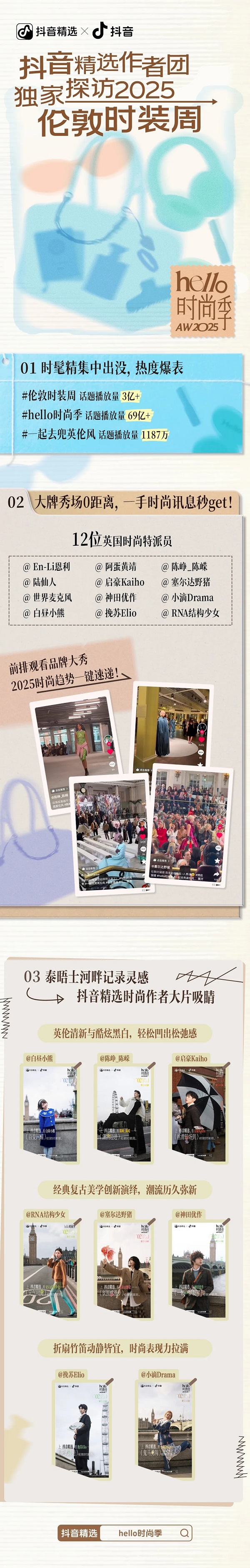 轉(zhuǎn)眼之間,2025秋冬倫敦時裝周如期落下帷幕。從秀場到街頭,從品牌創(chuàng)意理念到經(jīng)典英倫思潮,化身英國時尚特派員的12位抖音精選創(chuàng)作者們,在這場時尚盛宴中收獲了難忘的記憶與全新靈感啟發(fā)。