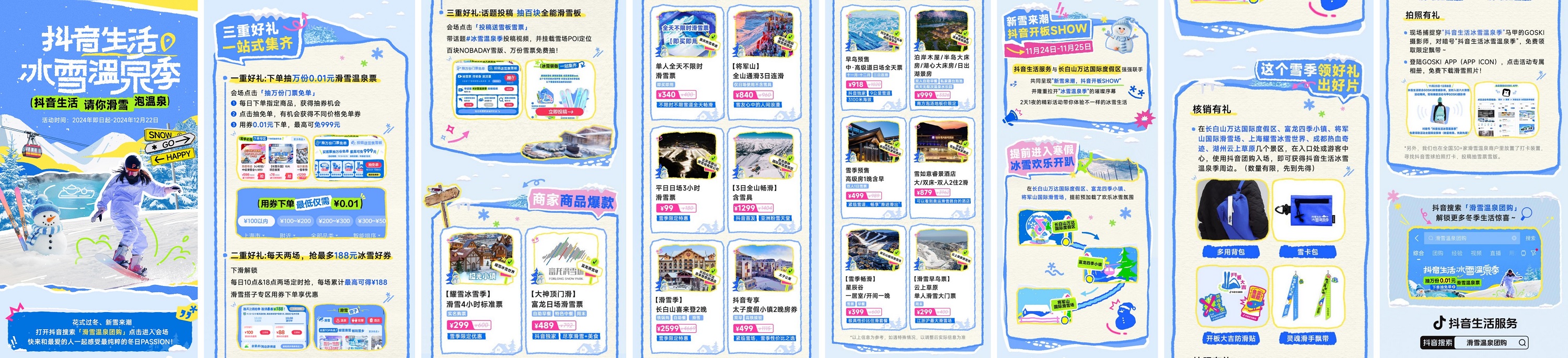 助力商家品牌成長,展現(xiàn)抖音生活服務多維價值 好生意“玩”出來“新雪來潮”快閃活動洞察到冬季活動年輕化、互動性趨勢,以創(chuàng)意巧思為驅(qū)動,平臺IP勢能聯(lián)動七大熱門雪場與優(yōu)質(zhì)品牌商家,完成了多品牌、多品類、多場景的聯(lián)合營銷大事件。將用戶和商家的需求精準鏈接,尤其是針對年輕消費群體撬動龐大的興趣流量,為抖音生活服務探索出一條提升品效的增長路徑,協(xié)助商家立好心智、做大聲量、提升銷量。