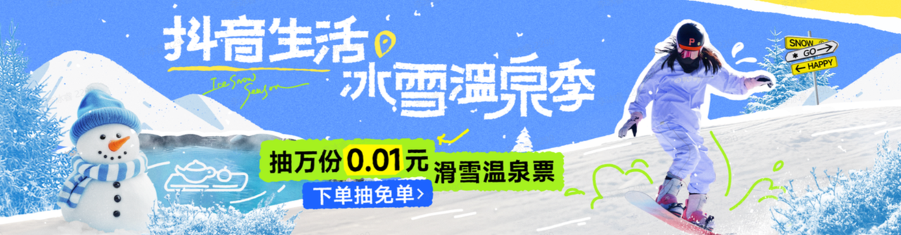 不要忘記積極參與「抖音生活冰雪溫泉季」活動,抓住最后一波超值福利! 愿所有的歡樂與美好,都在這個冬天沉淀!
