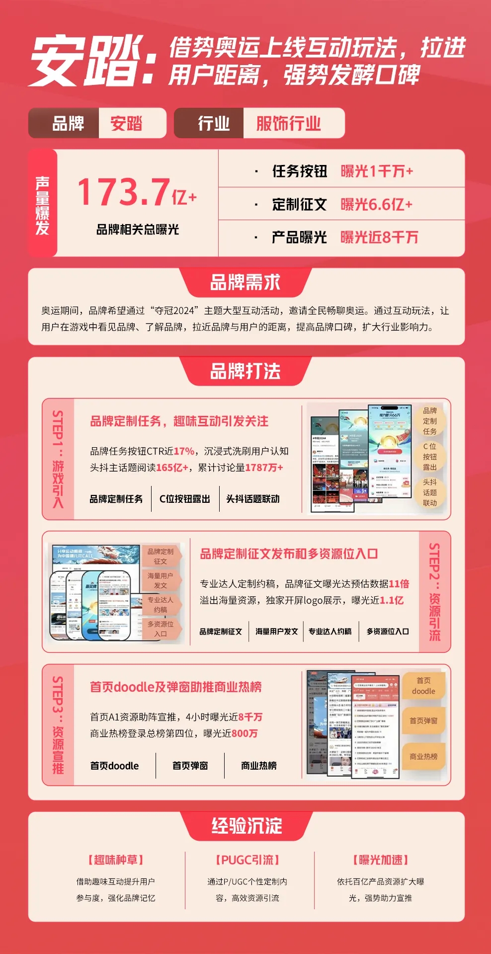 這些數(shù)據(jù)意味著,安踏不只在今日頭條實現(xiàn)了大范圍的曝光,更找對了目標(biāo)用戶,實現(xiàn)了精準(zhǔn)有效曝光,一舉強化發(fā)酵了品牌口碑。