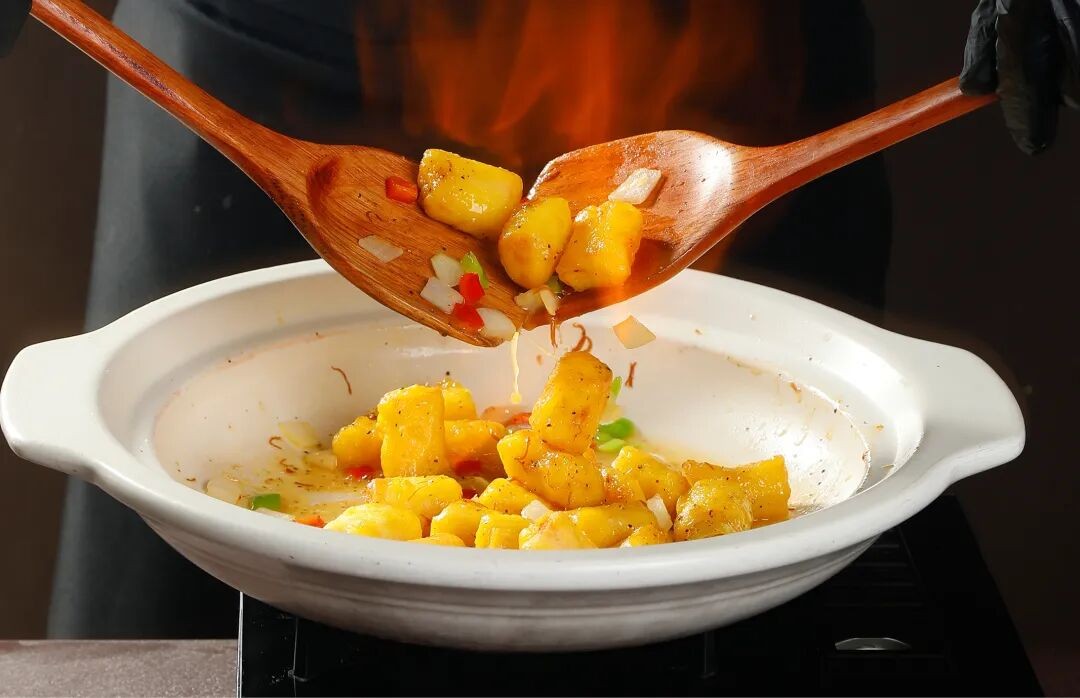 這體現(xiàn)在許多細(xì)節(jié):國(guó)家地理標(biāo)志產(chǎn)品--溫縣壚土鐵棍山藥配上黑胡椒,廚師現(xiàn)場(chǎng)堂做,為顧客呈現(xiàn)味覺(jué)、視覺(jué)雙重盛宴。