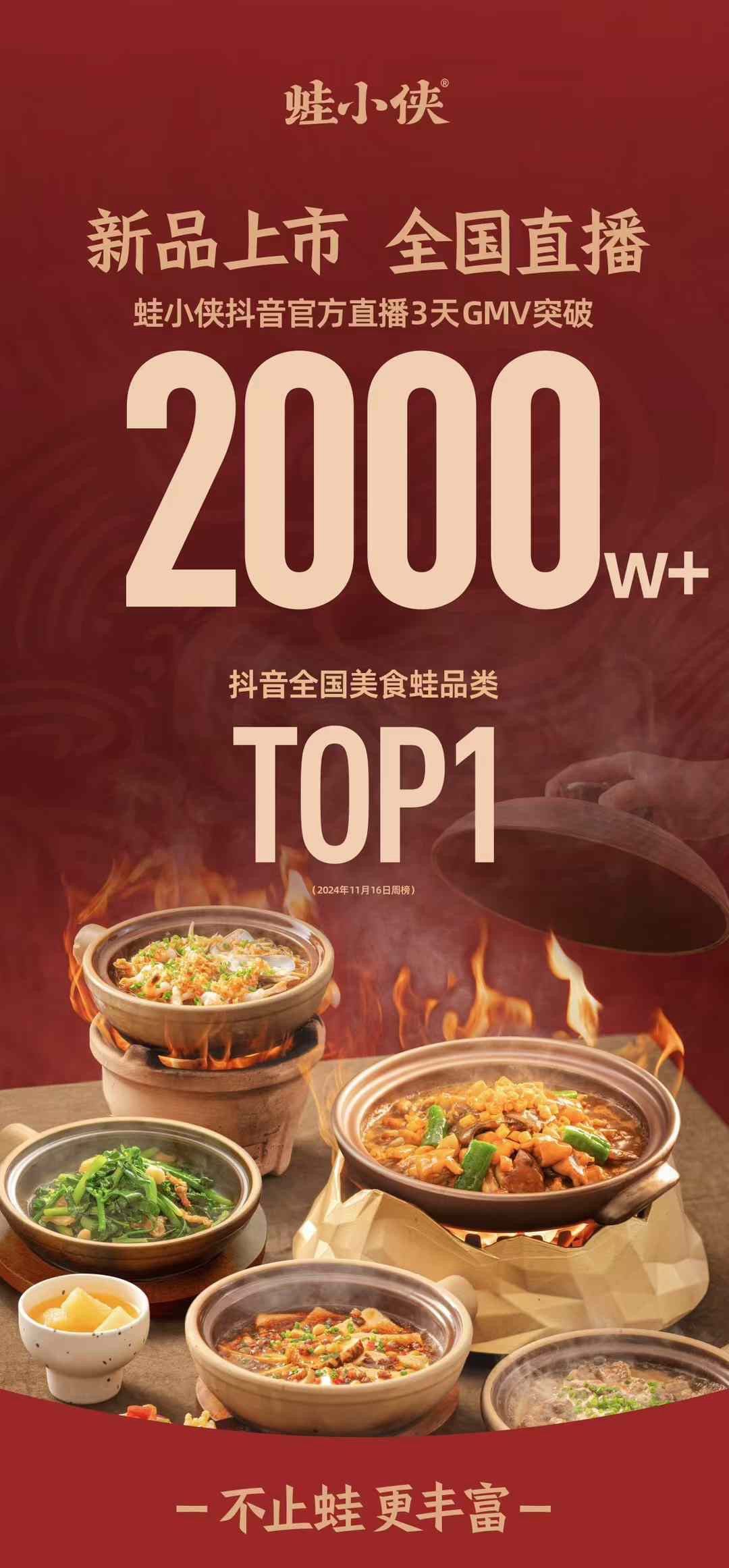 持續(xù)深耕蛙界的蛙小俠品牌,在冬季時令牽手「抖音心動上新日」為用戶帶來一場東方文化與舌尖味蕾的雙重享受,以一鍋熱氣騰騰的砂鍋,成功搭建起消費者對蛙小俠IP砂鍋系列的全新認知,在“不止蛙,更豐富”的福利大放價活動中迅速出圈,吸引了新人群的加入,也深度喚醒了老用戶的記憶,形成品牌獨有的優(yōu)勢競爭力。