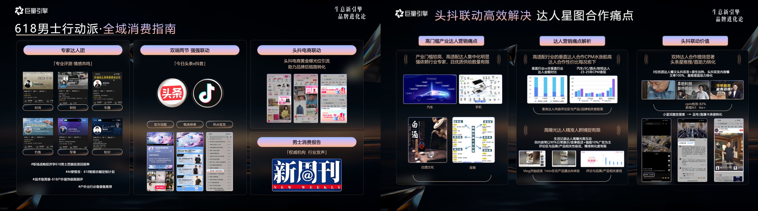 頭抖雙端全域聯(lián)動(dòng),借勢(shì)父親節(jié)車展節(jié)點(diǎn)助力品牌高效種草與精準(zhǔn)轉(zhuǎn)化專業(yè)內(nèi)容構(gòu)建信任,數(shù)據(jù)驅(qū)動(dòng)優(yōu)化效果,今日頭條平臺(tái)數(shù)據(jù)顯示,具備專業(yè)身份屬性的達(dá)人(如醫(yī)生、工程師、行業(yè)專家)內(nèi)容互動(dòng)率和轉(zhuǎn)化率顯著高于泛娛樂內(nèi)容。 為迎接父親節(jié)、8月汽車車展等重要營銷節(jié)點(diǎn),今日頭條特別推出了系列達(dá)人圖鑒,如「攻略老爸幫幫團(tuán)」達(dá)人圖鑒以及「頭號(hào)汽車大玩家」達(dá)人圖鑒,旨在通過精準(zhǔn)匹配適合不同節(jié)日氛圍與目標(biāo)受眾的專業(yè)達(dá)人,增強(qiáng)品牌的市場影響力。除此之外,今日頭條聯(lián)合抖音推出《頭抖達(dá)人流量加油計(jì)劃》,以“高專業(yè)度+高性價(jià)比+高轉(zhuǎn)化力”三力合一,助力品牌傳播效率翻倍,顯著提升投資回報(bào)率。 除此之外,今日頭條聯(lián)合抖音推出《頭抖達(dá)人流量加油計(jì)劃》,以“高專業(yè)度+高性價(jià)比+高轉(zhuǎn)化力”三力合一,助力品牌傳播效率翻倍。 一、高專業(yè)度:官方精篩1500+頭條/抖音雙持達(dá)人,覆蓋38個(gè)垂類,均為行業(yè)高投放達(dá)人。 二、高性價(jià)比:品牌僅需支付星圖單平臺(tái)價(jià)格,即可實(shí)現(xiàn)雙端流量聯(lián)動(dòng),CPM降低或增溢流量30%。 三、高轉(zhuǎn)化力:通過頭條小藍(lán)詞功能,品牌內(nèi)容直接跳轉(zhuǎn)核心會(huì)場,縮短決策鏈路,提升轉(zhuǎn)化效率。 品牌商家不僅能夠通過《頭抖達(dá)人流量加油計(jì)劃》的專屬資源包,享受達(dá)人合作的定制化優(yōu)惠,還能借助《618營銷招商手冊(cè)》,深入了解平臺(tái)流量扶持政策及達(dá)人合作案例。