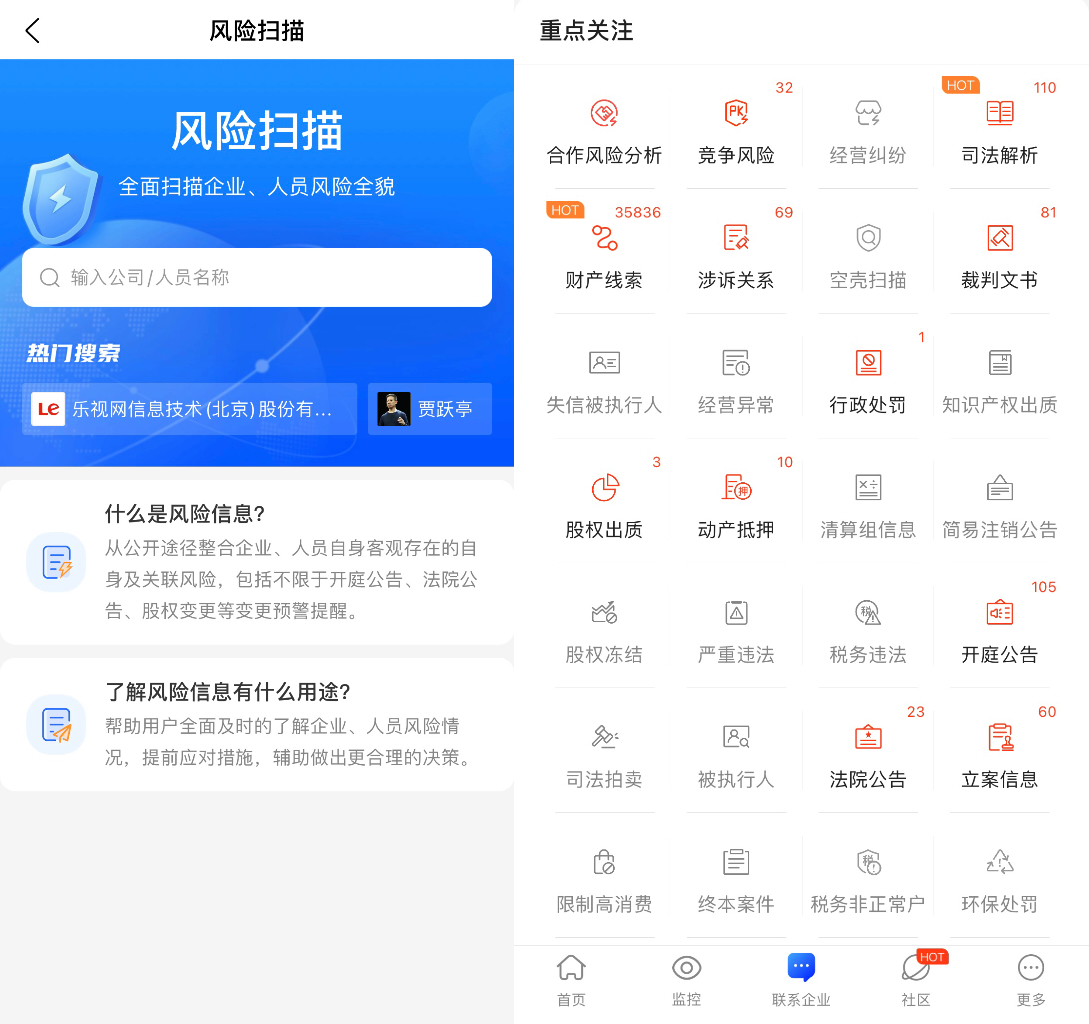 深入洞察和有效規(guī)避潛在風險,是確保合作穩(wěn)健進行的核心要素。愛企查提供企業(yè)風險深度挖掘功能,幫助用戶及時發(fā)現(xiàn)和規(guī)避潛在風險。職場人士可以通過愛企查的風險查詢功能,了解目標企業(yè)的司法風險、經(jīng)營風險等,避免在合作中遇到不必要的麻煩。此外,愛企查不止于呈現(xiàn)企業(yè)基礎維度信息,更能深入挖掘相關(guān)企業(yè)與關(guān)鍵人物之間的商業(yè)關(guān)系網(wǎng)絡,助力用戶發(fā)現(xiàn)潛在的商業(yè)合作機會。
