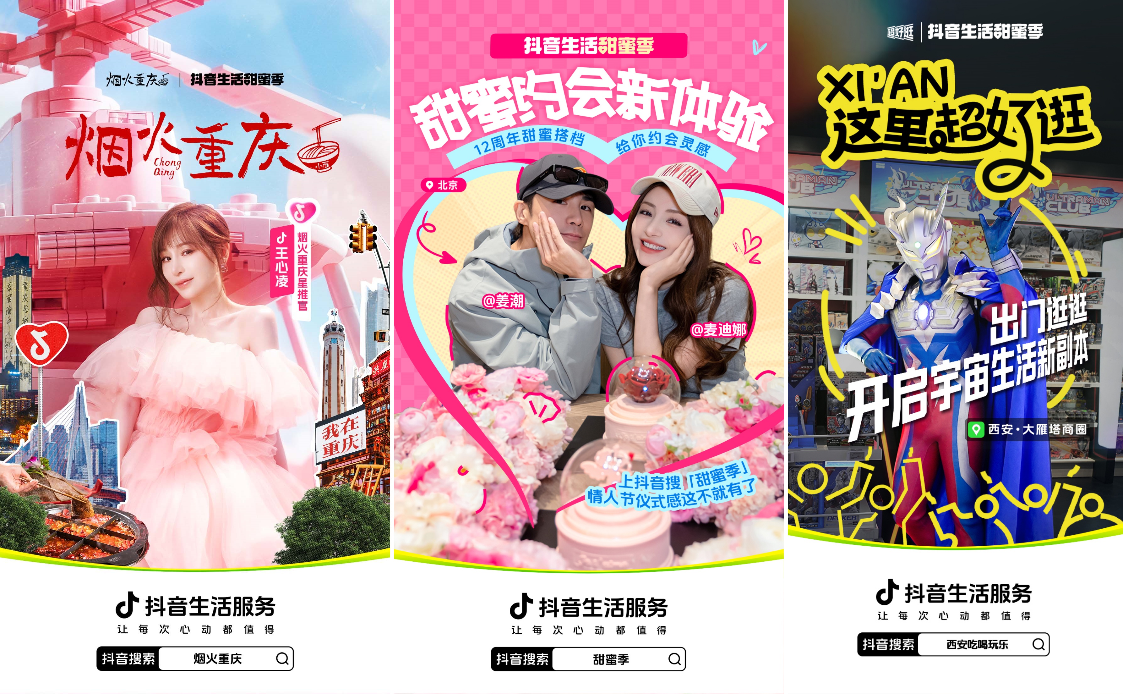 不止線上下單、一鍵轉(zhuǎn)贈(zèng)的新型“送體驗(yàn)”方式,「抖音生活甜蜜季」還推出明星助陣、跨界聯(lián)名、地標(biāo)大屏打卡多重玩法,為過節(jié)送禮開辟線下新體驗(yàn)。南區(qū)牽手“甜心教主”王心凌,通過Vlog分享慕叁山甜品,并在演唱會(huì)期間現(xiàn)身重慶大融匯,派發(fā)同款甜蜜。中區(qū)不僅聯(lián)動(dòng)“愛是保護(hù)你的英雄搭子”奧特曼,提供滿滿安全感,更邀約破破爛爛的烤肉店品牌創(chuàng)始人直播“價(jià)到”,給大家飽飽的幸福感。北區(qū)邀約姜潮、麥迪娜夫婦上演情人節(jié)微電影,聯(lián)合多個(gè)商家為情侶們?nèi)按蛟?ldquo;約會(huì)小宇宙”。