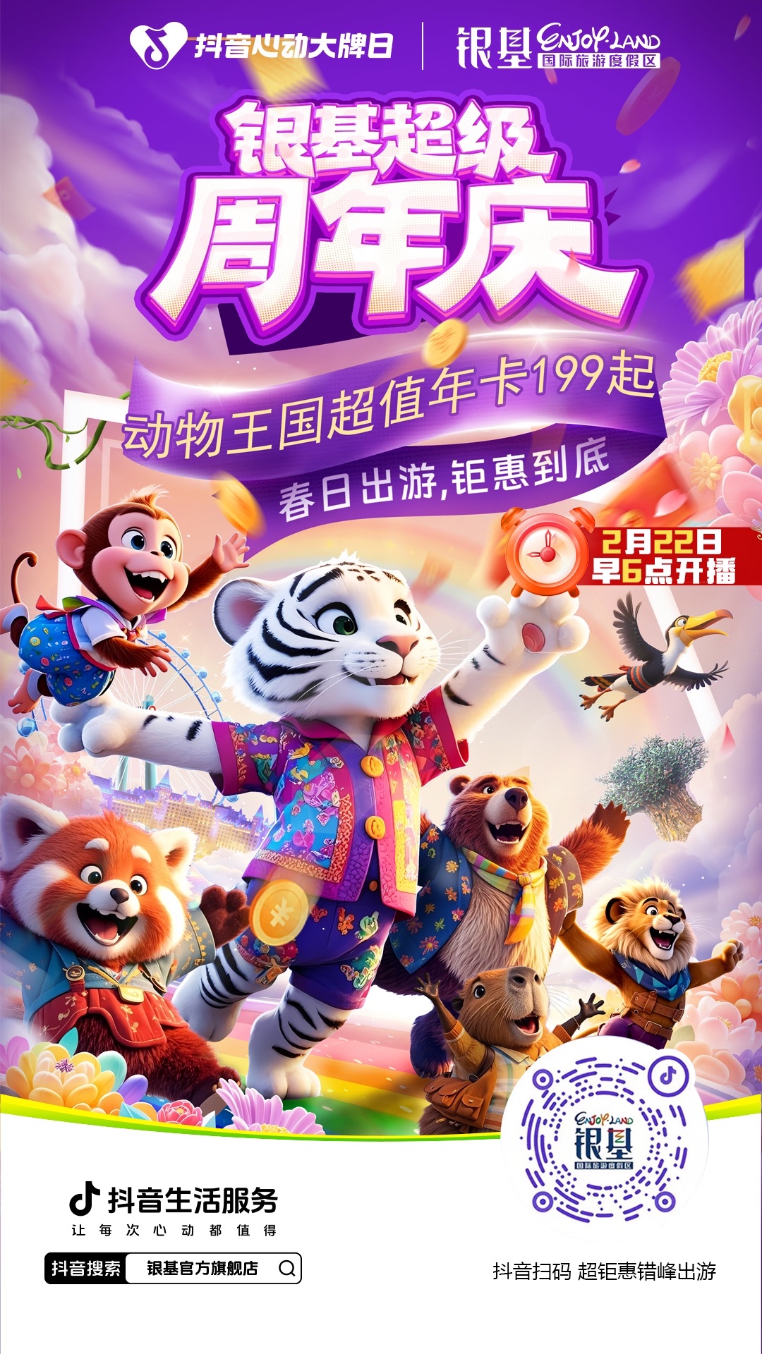 銀基國(guó)際旅游度假區(qū)于2月20日周年慶之際,聯(lián)動(dòng)「抖音心動(dòng)大牌日」推出商家年度top爆品,以一場(chǎng)“銀基國(guó)際旅游度假區(qū)周年慶”主題活動(dòng),深情回饋用戶朋友們長(zhǎng)久以來(lái)的厚愛(ài)與支持。在官方賬號(hào)大促直播間內(nèi),品牌不僅為大家放送2天1晚、3天2晚等覆蓋雙人、三人的豐富暢玩套票,還有199元、299元、799元?jiǎng)游锿鯂?guó)超值年卡供粉絲們搶購(gòu),充分展現(xiàn)了銀基品牌周年慶的滿滿誠(chéng)意與優(yōu)惠力度。在活動(dòng)宣傳方面,品牌聯(lián)動(dòng)@寧小雪 等超頭達(dá)人發(fā)布深度游玩攻略視頻,主打讓粉絲朋友不錯(cuò)過(guò)任何一波福利;并在高人流量的核心商圈大屏滾動(dòng)播放此次鉅惠信息,深化用戶對(duì)品牌“好吃、好玩又好住”的感知度。借由這一年度狂歡大hj促節(jié)點(diǎn),銀基國(guó)際旅游度假區(qū)以“超有品、超鉅惠”的心動(dòng)福利和年度最優(yōu)惠的“省”心好品,誠(chéng)邀大家攜家?guī)Э诠哺皻g樂(lè)世界。此舉不僅促進(jìn)了“線上下單—線下核銷”的交易轉(zhuǎn)化,更將助推品牌業(yè)績(jī)?cè)谥苣旯?jié)點(diǎn)的突破性增長(zhǎng)。