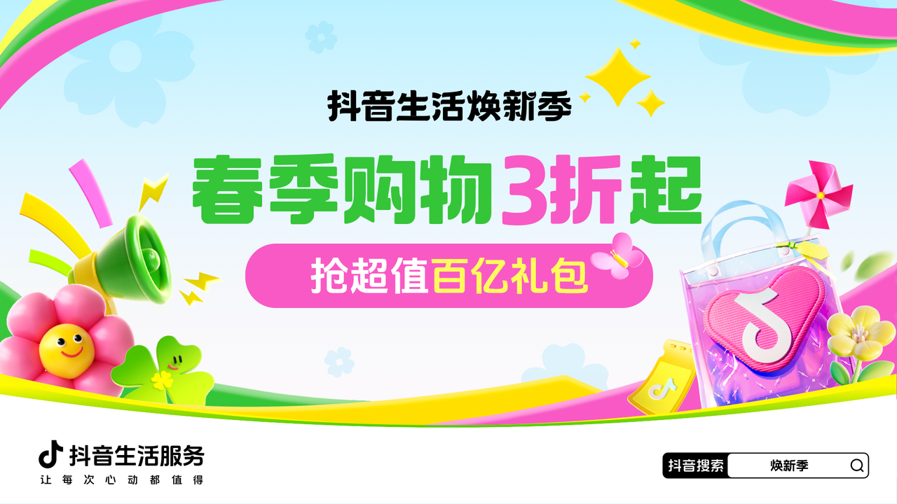逛街先逛「抖音生活煥新季」!即日起上抖音搜索#煥新季 ,進入活動主會場,線上選購下單,線下核銷體驗,在春天,從新開始,從心綻放。